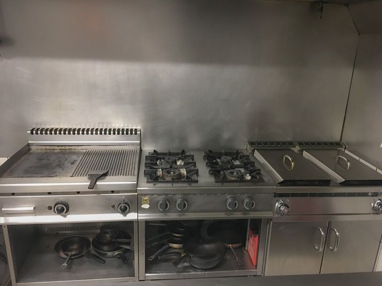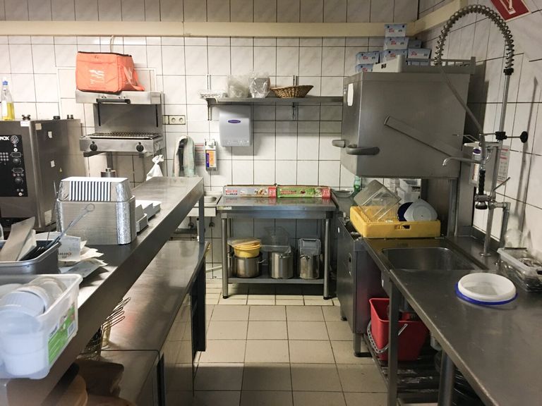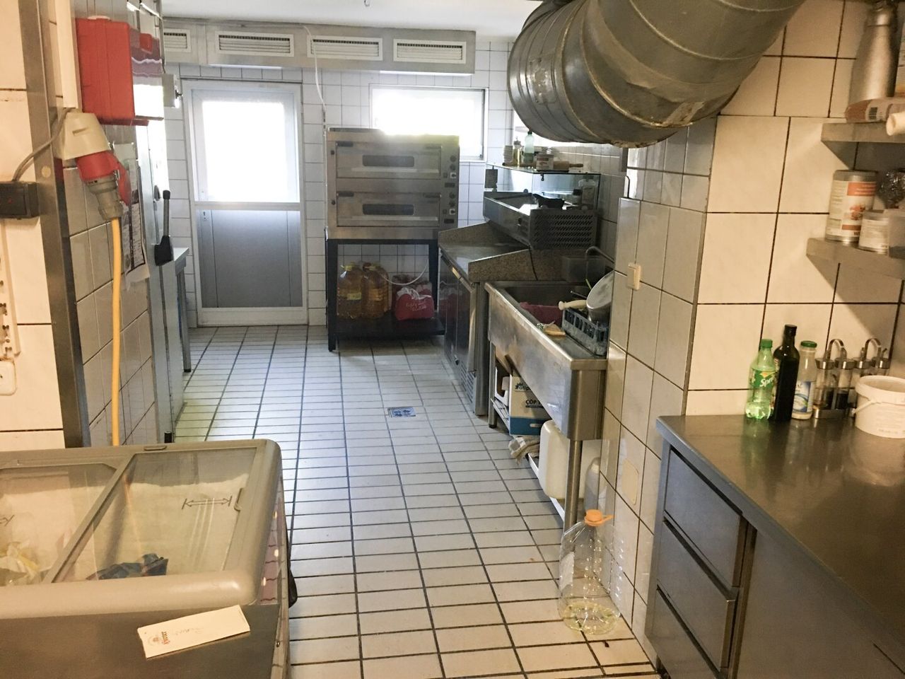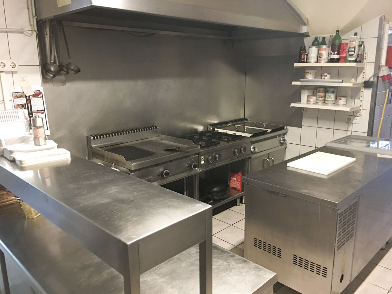 Die großzügige Profiküche ist voll funktionsfähig und modern ausgestattet. Sämtliche erforderlichen technischen Geräte sind vorhanden, ergänzt durch eine große Kühl- und Gefrierbox.
