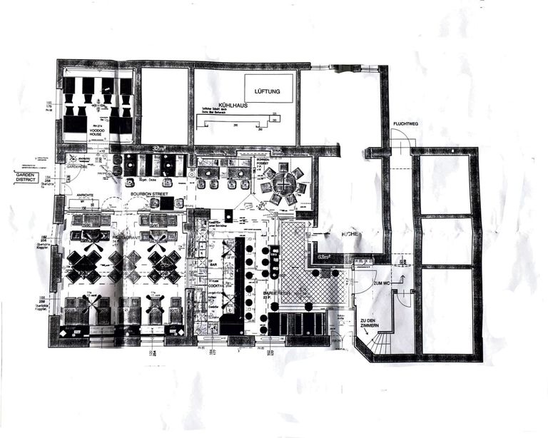 Die Bar- und Restauranträumlichkeiten sind vollständig möbliert und hochwertig ausgestattet. Der Innenbereich bietet Platz für ca. 100–120 Gäste und ist funktional in mehrere Bereiche gegliedert.