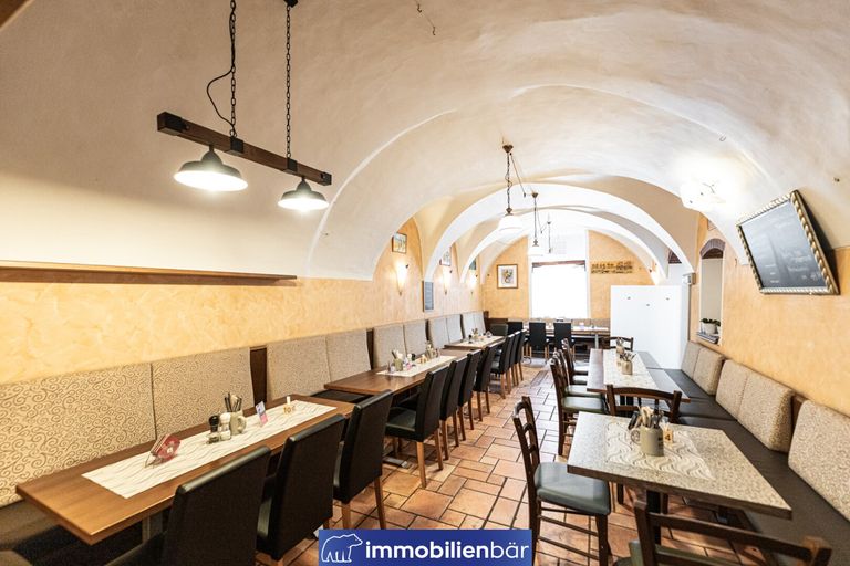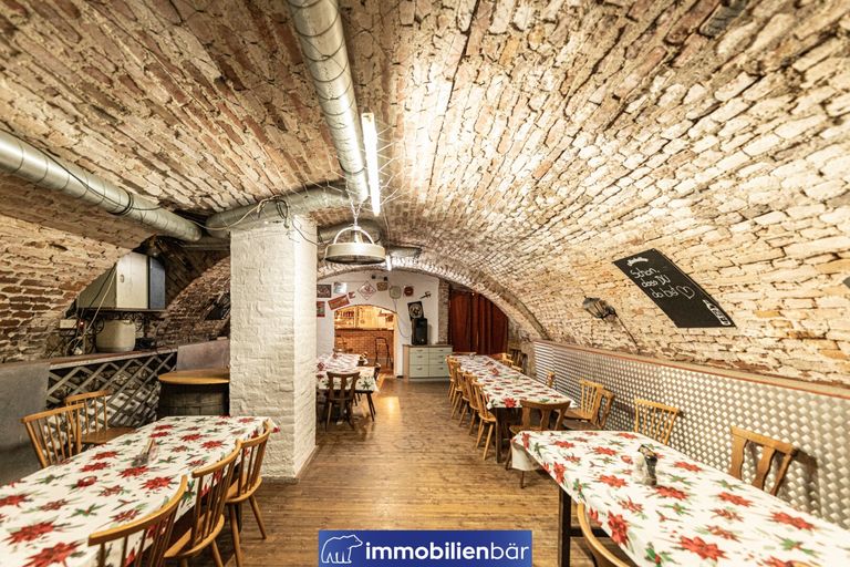 • 350m² Nutzfläche • 2 gemütliche Gastzimmer mit ca. 60 Sitzplätzen • Bar mit Schankanlage im Hauptgastzimmer • Gastgarten für ca. 40 Personen – behördlicher Bescheid vorhanden • Gesamtkapazität innen & außen: 107 Sitzplätze • Gewölbekeller...