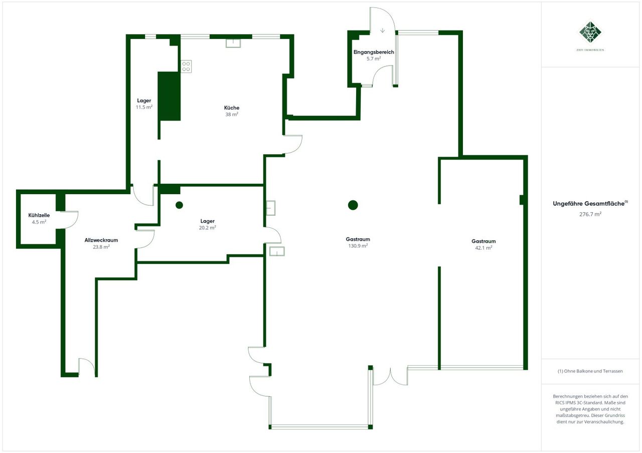 Ein besonderer Vorteil ist der separate Zugang, durch den der Restaurantbetrieb unabhängig von den Öffnungszeiten des Centers geführt werden kann. Dies ermöglicht Abendbetrieb, Veranstaltungen oder flexible Öffnungszeiten ganz nach Bedarf.
