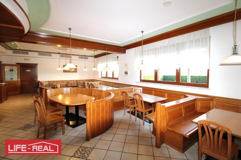 Großzügiges Gasthaus mit einer Innenfläche von ca. 265 Quadratmetern sowie bei Bedarf einem Festsaal mit zusätzlichen 185 Quadratmetern. Ergänzend stehen optional Zimmer für Mitarbeiter oder zur Vermietung zur Verfügung. Am Objekt befinden sich zudem zwei Eisstockbahnen, die mit betrieben werden könnten.