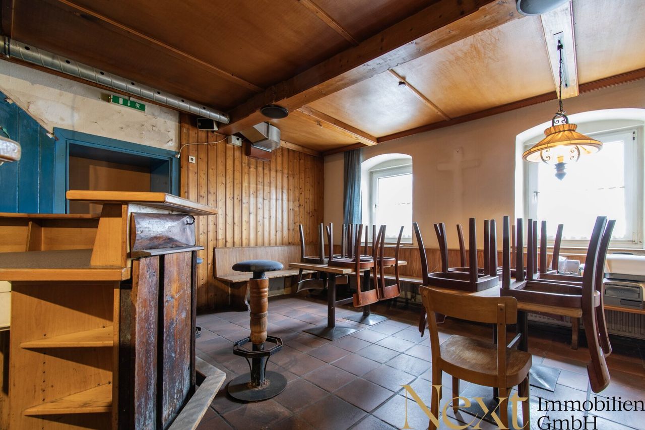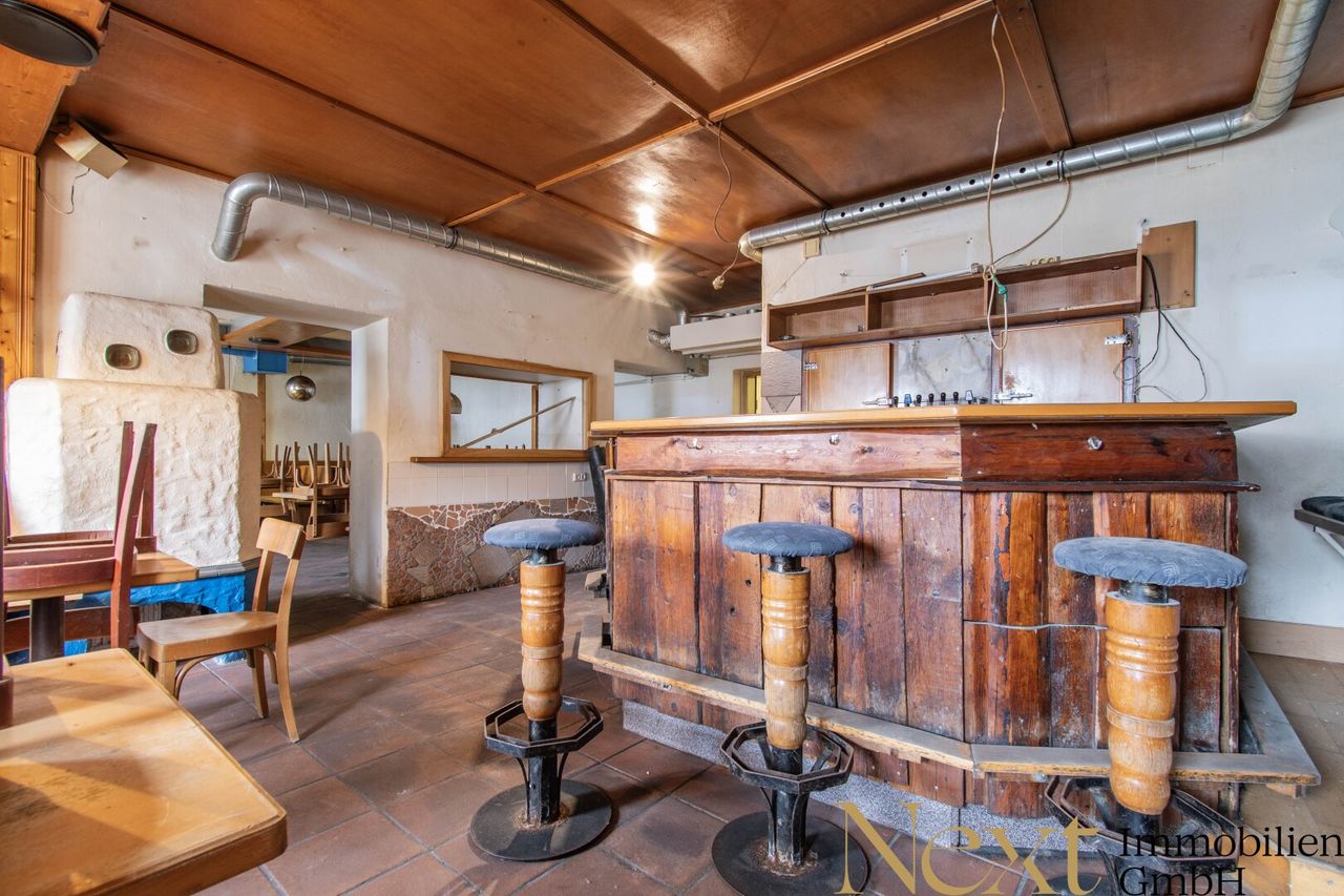 Die beiden vorhandenen Gasträume, mit ca. 33,07m² und ca. 43,86m², sind durch zwei Durchgänge miteinander verbunden und bilden eine großzügige Gaststube, die sich hervorragend für gesellige Runden eignet. Zusätzlich steht ein besonders charmanter separater Gastraum zur Verfügung, der sich ideal für geschlossene Gesellschaften eignet und einen einladenden Rahmen für besondere Anlässe bietet.