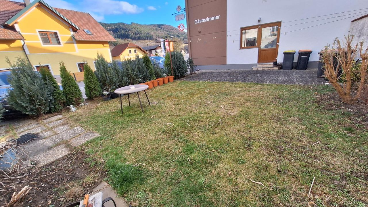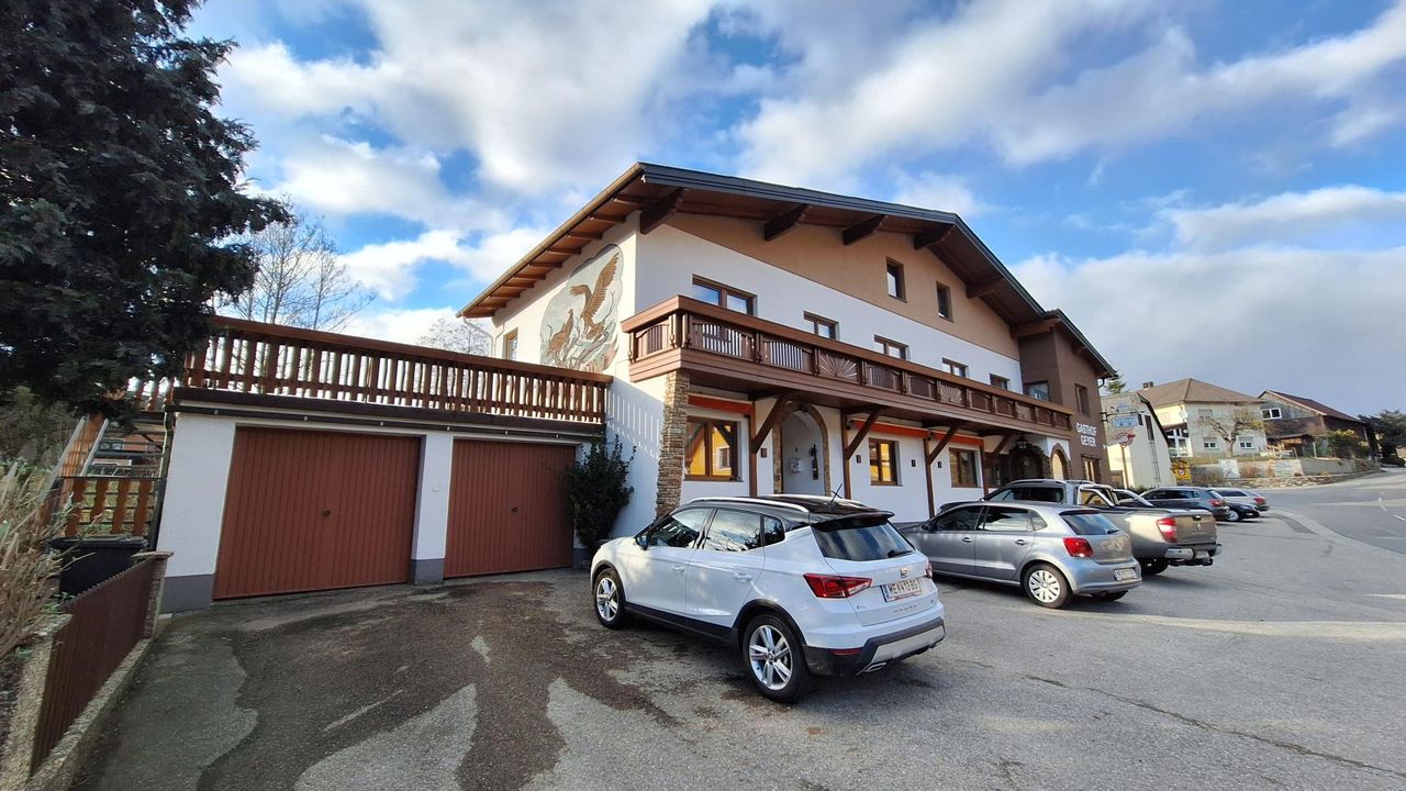 Gastgarten ca. 25 Pers., Gästeterrasse ca. 40 Pers. PKW- Abstellplatz