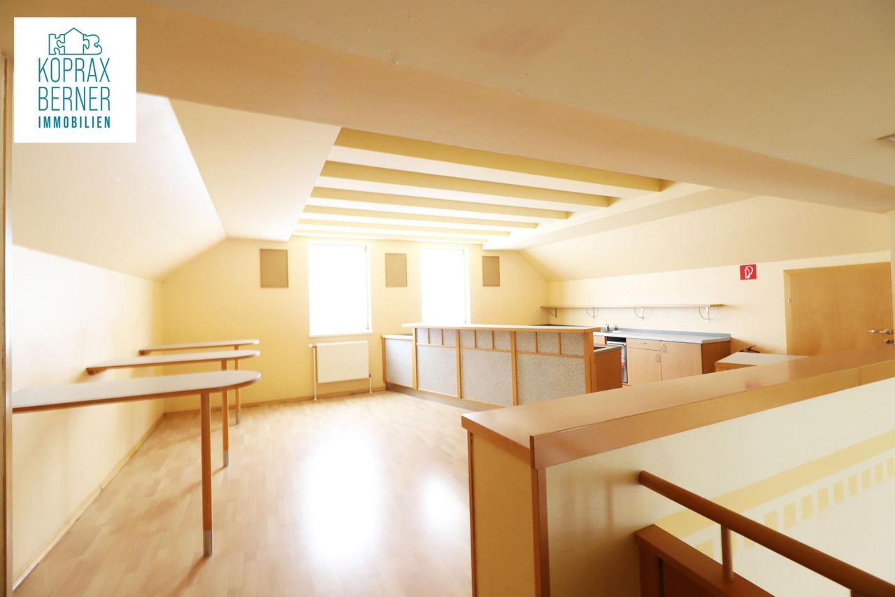 Festsaal im Zentrum von Böheimkirchen Vielseitig nutzbar - für Vorträge, Präsentationen, Ausstellungen, Theater, Bälle, Hochzeiten, Konzerte und vieles mehr. Direkt im Zentrum von Böheimkirchen gelegen, können Sie dieses Objekt für Ihre zukünftige Nutzung anmieten. Insegsamt stehen ca. 452 m² Nutzfläche zur Verfügung: Erdgeschoß: -Eingangsbereich: 11,18 m² -Vorraum: 13,16 m² -Garderobe: 12,46 m² -Abstellraum_ 4,76 m² Obergeschoß: -Saal: 280,51 m² -Bühne: 38,50 m² -Küche: 15,91 m² -Foyer: 20,61 m² -Sanitärbereich: 15,78 m² Galerie-Geschoß: -Galerie: 52,42 m² -Bar: 35,51 m² -Abstellräume: 12,35 m² Die monatlich Netto-Miete beträgt 1.600,-- Euro die Betriebskosten monatlich betragen 800,-- Euro netto. (Gesamt 2.880,--Euro brutto) Gerne stehen wir...