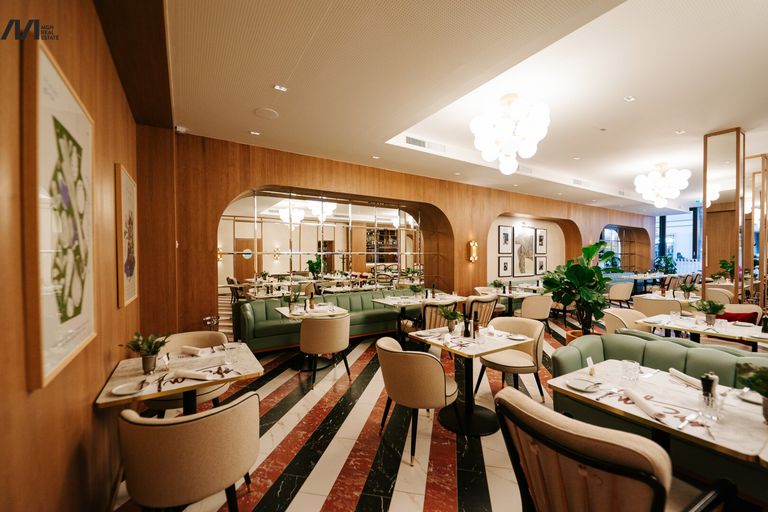 Großzügige Gasträume, eine repräsentative Bar sowie ein attraktiver Außenbereich ermöglichen eine flexible Nutzung: vom intimen Abendservice bis hin zu exklusiven Veranstaltungen. Die Küche ist professionell geplant und bietet optimale Arbeitsabläufe für einen anspruchsvollen Betrieb. Ergänzt wird das Angebot durch Nebenflächen wie Lager- und Kühlmöglichkeiten, Personalbereiche sowie Sanitäranlagen.