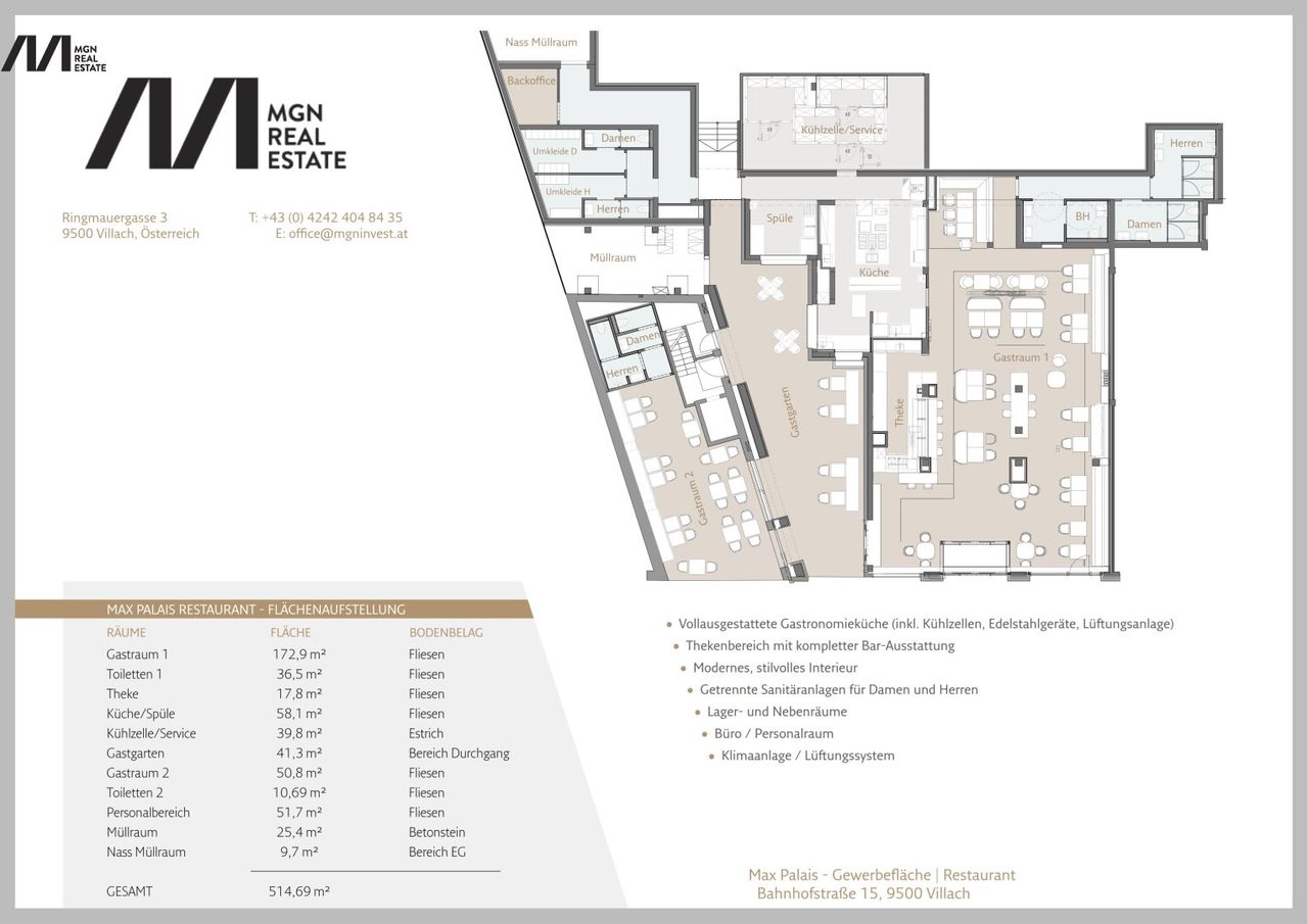 Hochwertige Gastronomiefläche zur Verpachtung in Villach
