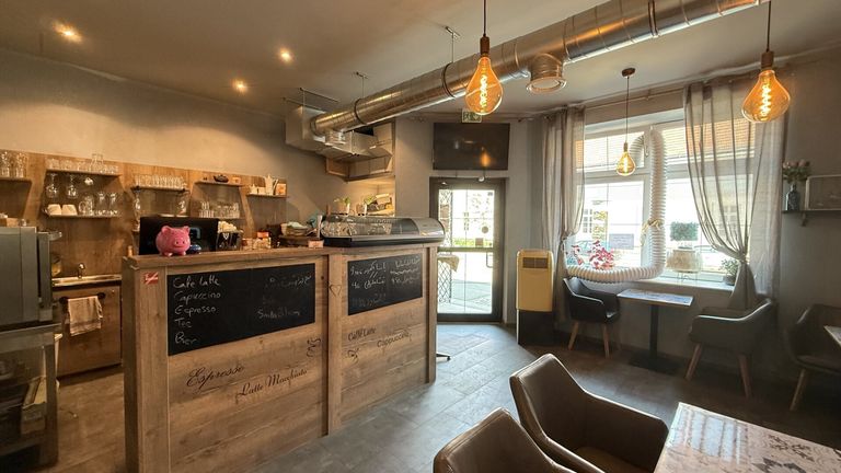Der Verkaufsraum hat eine Größe von ca. 35 m2. Hier erwartet Sie eine sehr schöne Bar/Theke mit Kühlvitrinen, Espressomaschine, Kühlladen, Zapfsäule, etc.