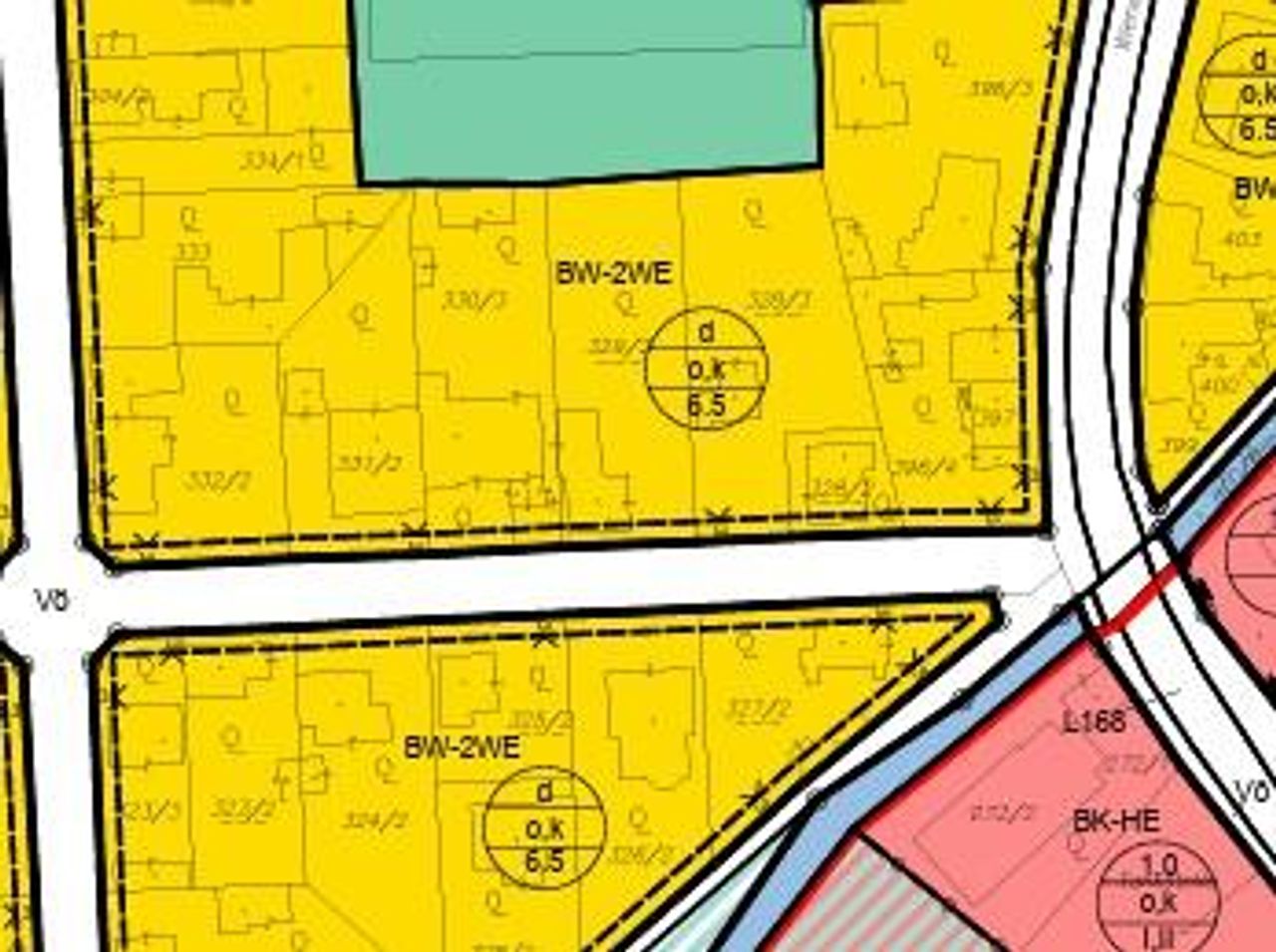 Flächenwidmung und Bebauung: Bau-Wohngebiet, offen, gk. 6,5 m Höhe, Bebauungsbestimmungen: BW 2-WE, Teilung mind. 600 m², Hebesatz 700, 480 m² gesamt bebaubar, bei 700 m² ca. 270 m².