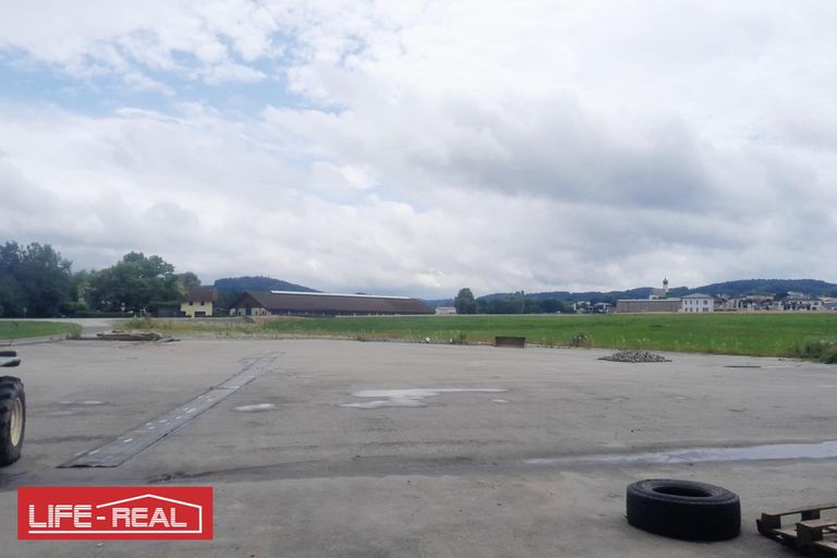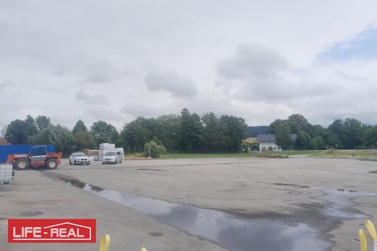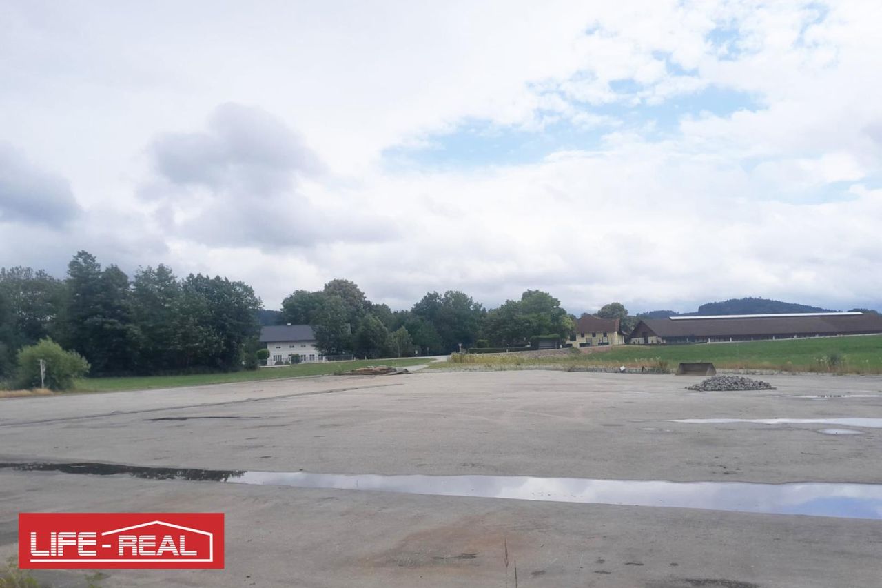 Das Gewerbegrundstück liegt zwischen Ried im Innkreis und Braunau, direkt an einer Bundesstraße. Laut Auskunft des Eigentümers sind ca. 2.700 m² asphaltiert und der Rest mit Bruchmaterial befestigt. Die Anschlüsse wie Kanal und Strom befinden sich an der Grundstücksgrenze.