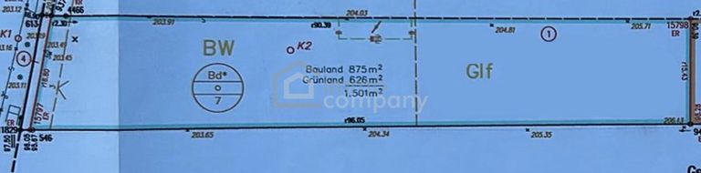 - Von den 1.501m² sind ca. 875m² Bauland, Rest Grünland (ca. 626m²)
