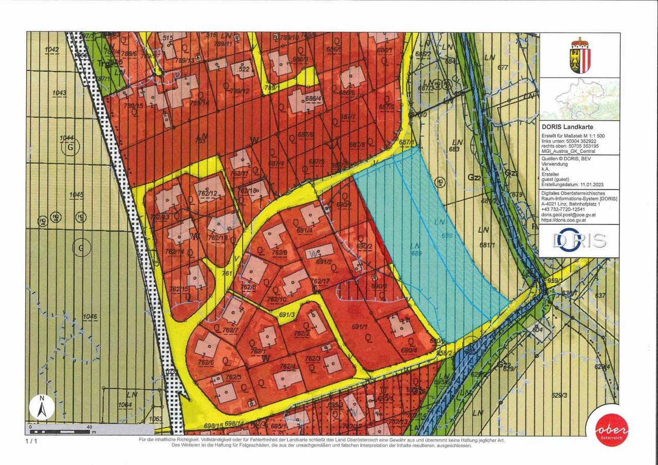 Das Grundstück weist derzeit noch eine Grünlandwidmung auf. Es liegt aber bereits ein Grundsatzbeschluss des Gemeinderates für eine Umwidmung in Bauland-Wohngebiet vor. Auch gibt es bereits eine mögliche Bebauungsstudie für eine enggruppierte Bebauung mit 6 Doppelhäusern