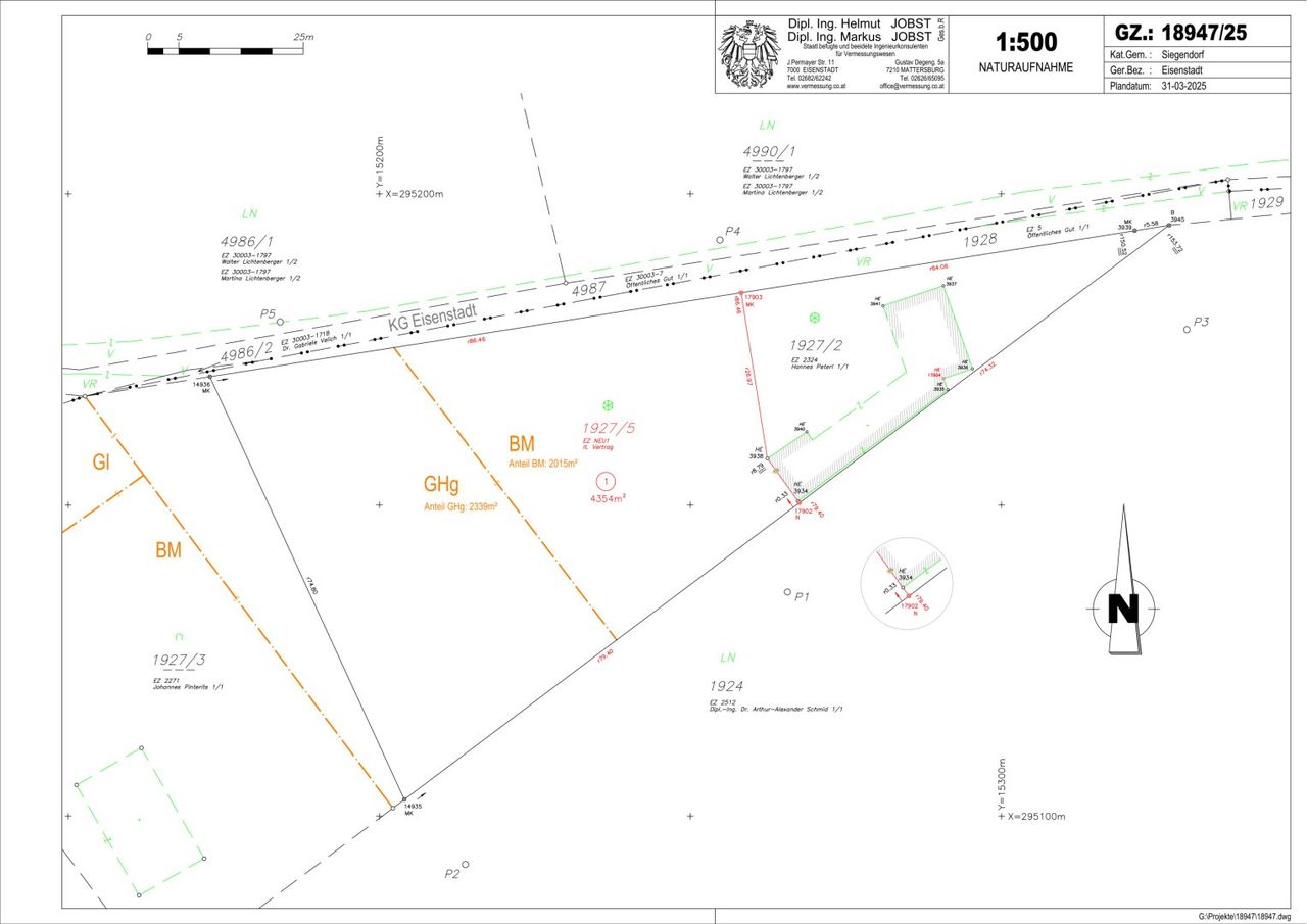 GRUNDSTÜCKSGRÖSSE: insgesamt 4.354 m² davon ca. 2.015 m² als Bauland – Mischgebiet gewidmet und 2.339 m² als Grünland-Hausgarten gewidmet