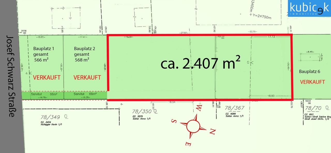 Dieses großzügige Grundstück erstreckt sich über eine Fläche von ca. 2.407 m² und bietet eine ideale Grundlage für die Errichtung mehrerer Wohneinheiten. Mit einer Breite von rund 30 Metern und einer Tiefe von etwa 82 Metern weist das Grundstück eine äußerst praktische Form auf, die eine effiziente Bebauung ermöglicht.