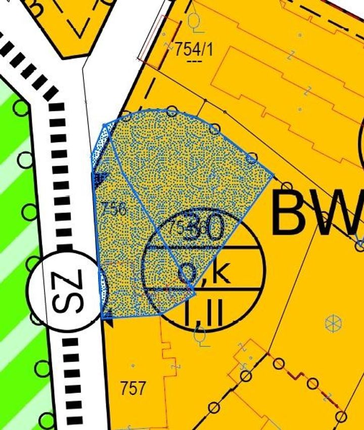 Die genaue Grundstückskonfiguration wird noch durch eine Neuvermessung ermittelt. Eine Parzelle ist mit einem Abbruchhaus bebaut und damit sind die Aufschließungskosten für BK I entrichtet. Die zweite Parzelle ist unbebaut, die Aufschließungskosten sind daher noch zur Gänze zu entrichten