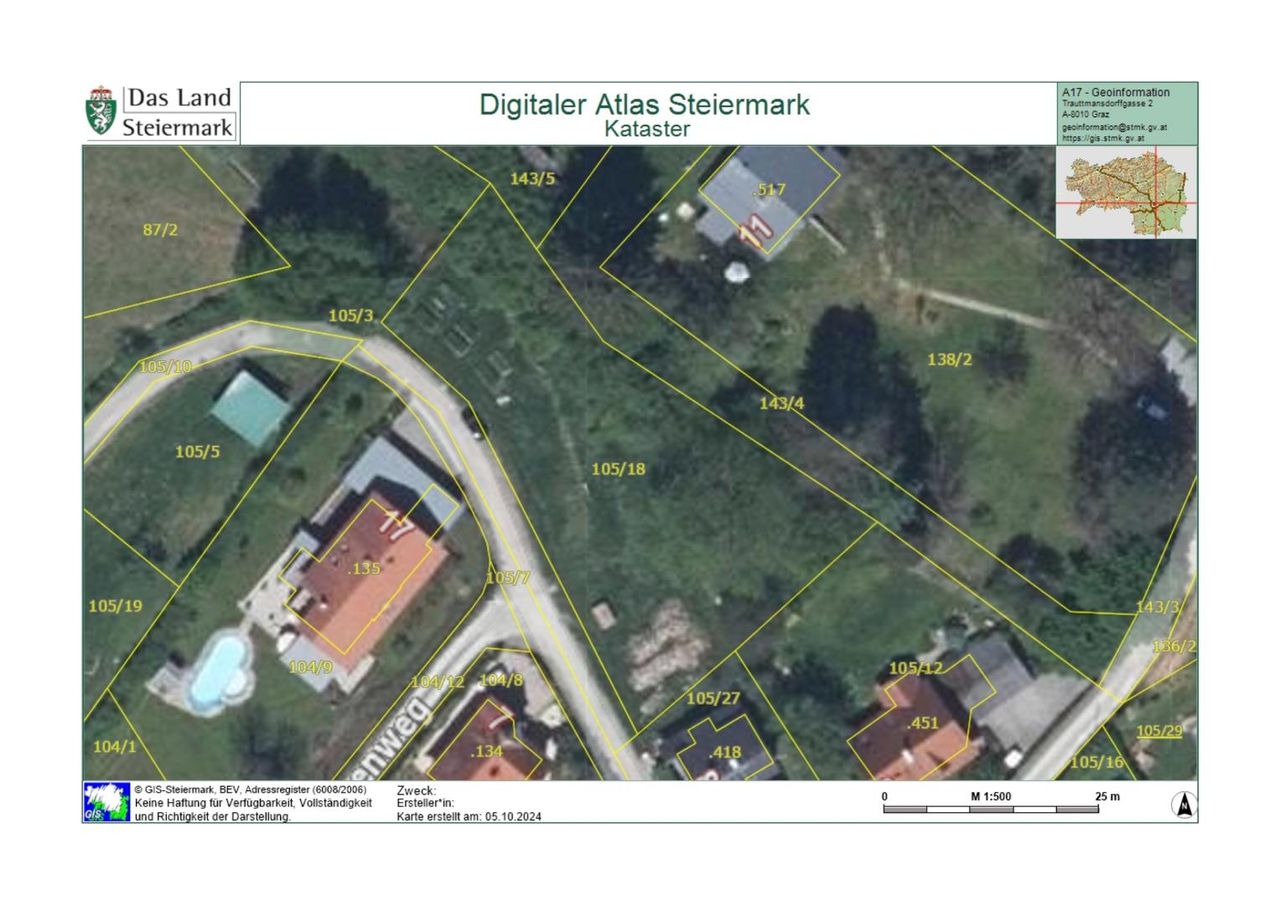 Hier werden Ihre Wohnträume wahr: nur wenige Minuten vom LKH entfernt, liegt dieses schöne Grundstück leicht erhöht im Stiftingtal. Ganztagessonne, alter Baumbestand und eine wenig befahrene Zufahrtsstraße zeichnen dieses Grundstück aus.