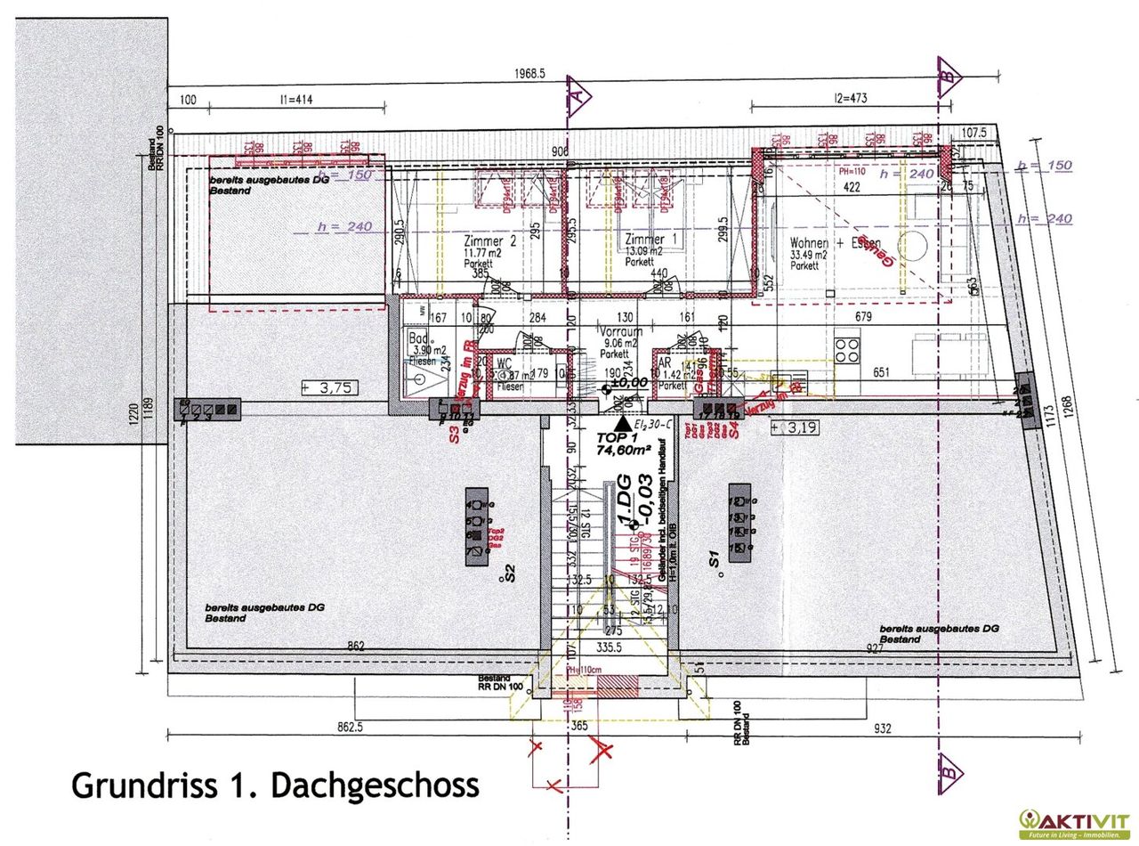 Die Projekt-Liegenschaft umfasst 2 Rohdachböden inklusive der Baugenehmigung und Einreichplanung für ein Projekt mit 6 Wohneinheiten.