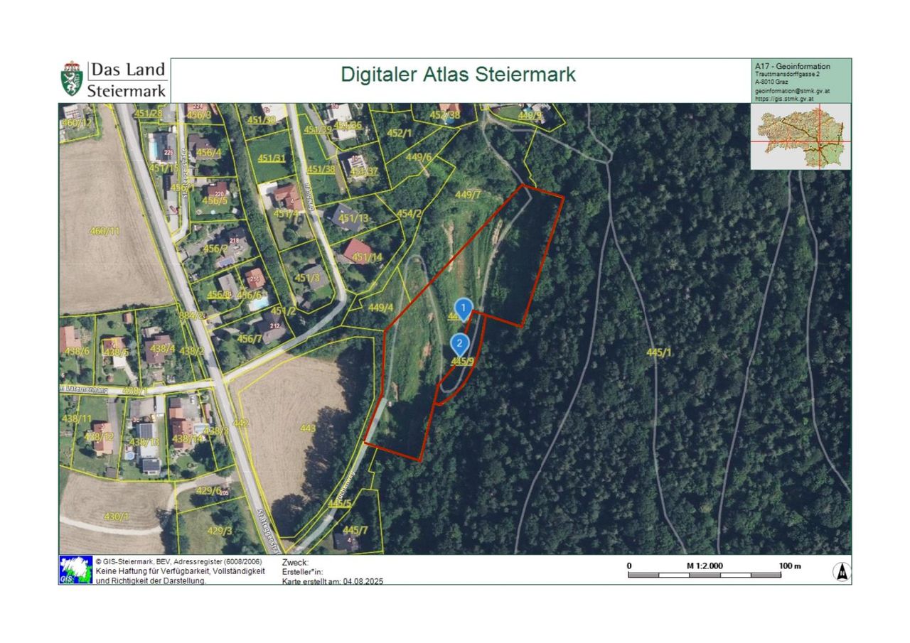 Stattegg ist eine Gemeinde in der Steiermark nördlich angrenzend an Graz, am Fuße des Schöckls. In Panoramalage mit einer herrlichen Aussicht stehen hier ca. 8.800 m² Bauland (Widmung WR 02, - 0,4) und ca. 500 m² Freiland zum Verkauf. INFRASTRUKTUR: Das Zentrum der Landeshauptstadt Graz erreichen Sie in ca. 20 Fahrminuten. Zum Andritzer Hauptplatz fahren Sie 10 Minuten mit dem Auto. Nähere Deteils zur Infrastruktur entnehmen Sie bitte beiliegendem Lage-Exposé. Sie sind interessiert und möchten das Grundstück gerne vor Ort besichtigen? Dann freue ich mich auf Ihre Kontaktaufnahme. Wir weisen darauf hin, dass es sich bei diesem Preis um einen...