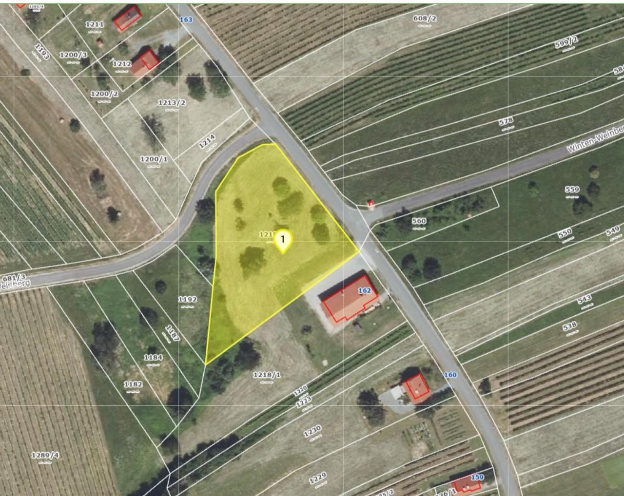 Zum Verkauf steht ein 3.066 m² großes Grundstück mit der Widmung Grünland, Kellerzone und Weinproduktionszone.