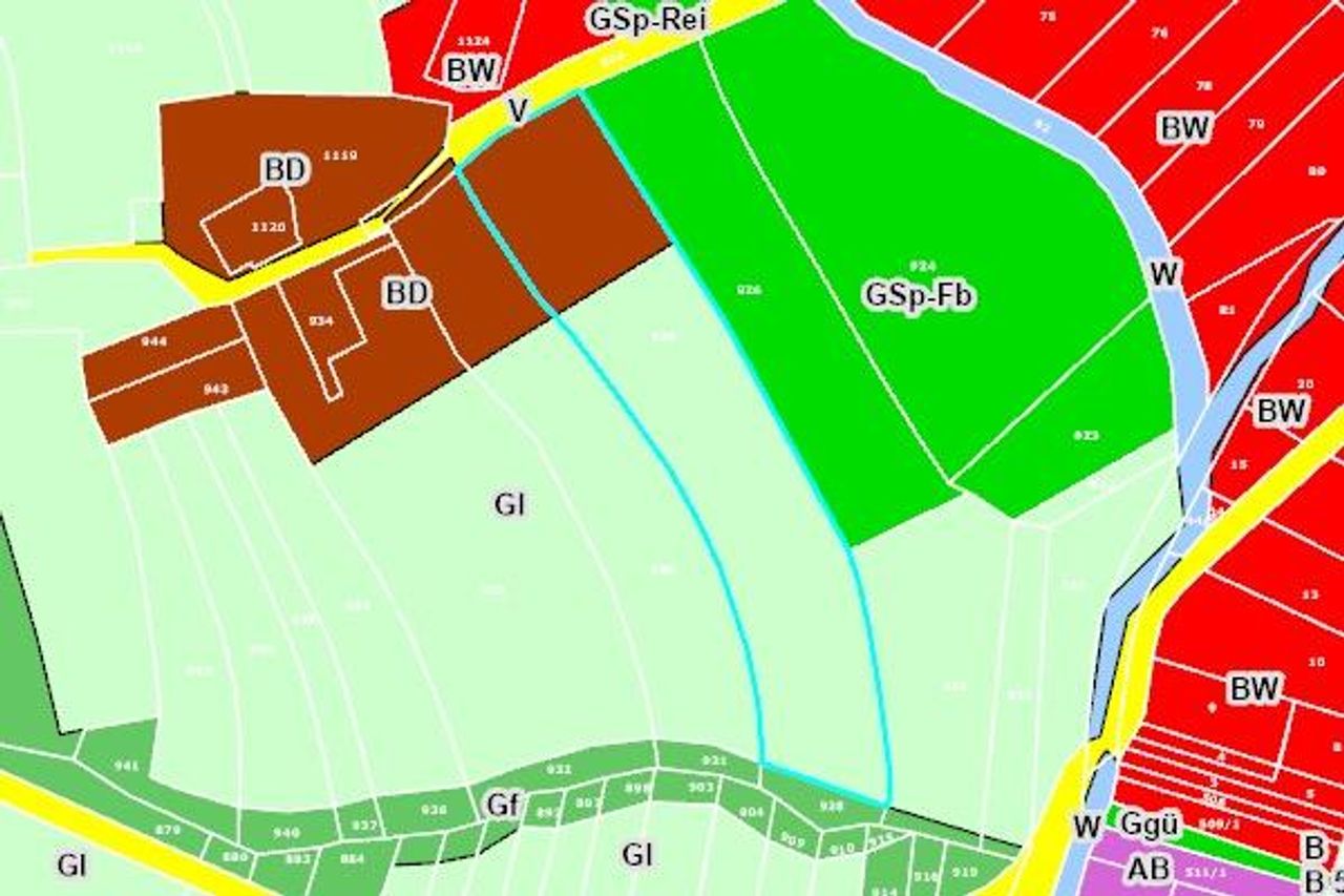 Davon sind 2.120 m² als Bauland – Dorfgebiet gewidmet, der restliche Teil als Grünland ausgewiesen.
