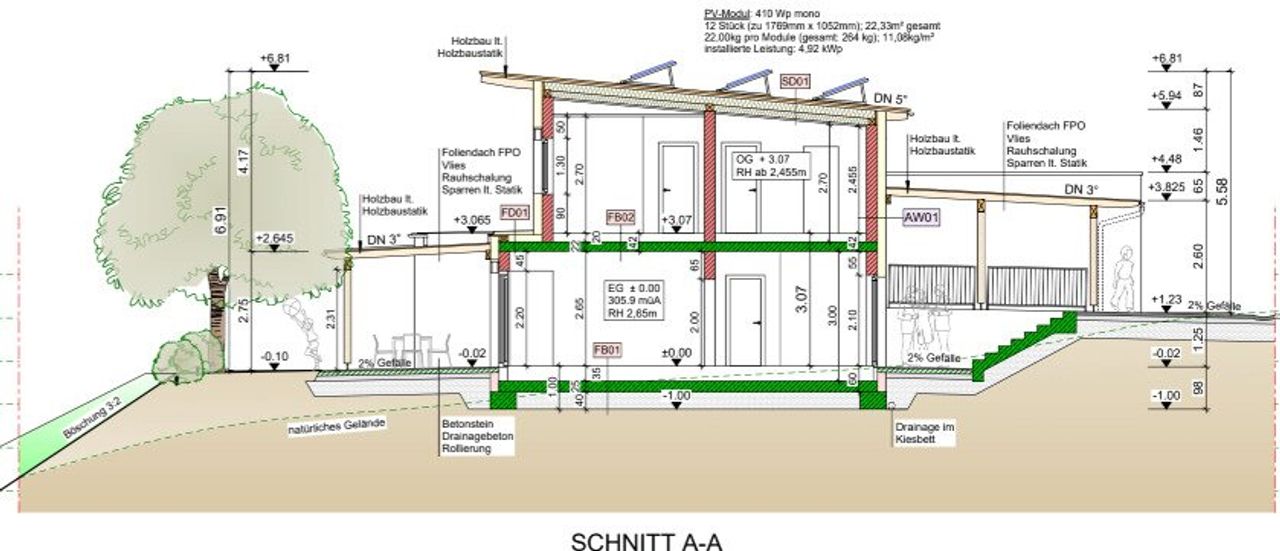 Im Preis inbegriffen ist der Einreichplan, die Baugenehmigung, Vermessung, Abgaben für Baubescheid und Kanalanschlussgebühr.