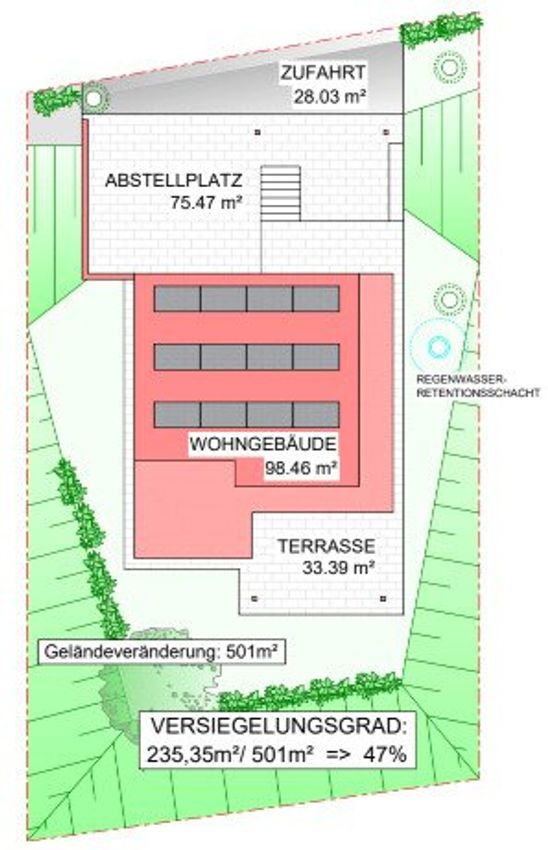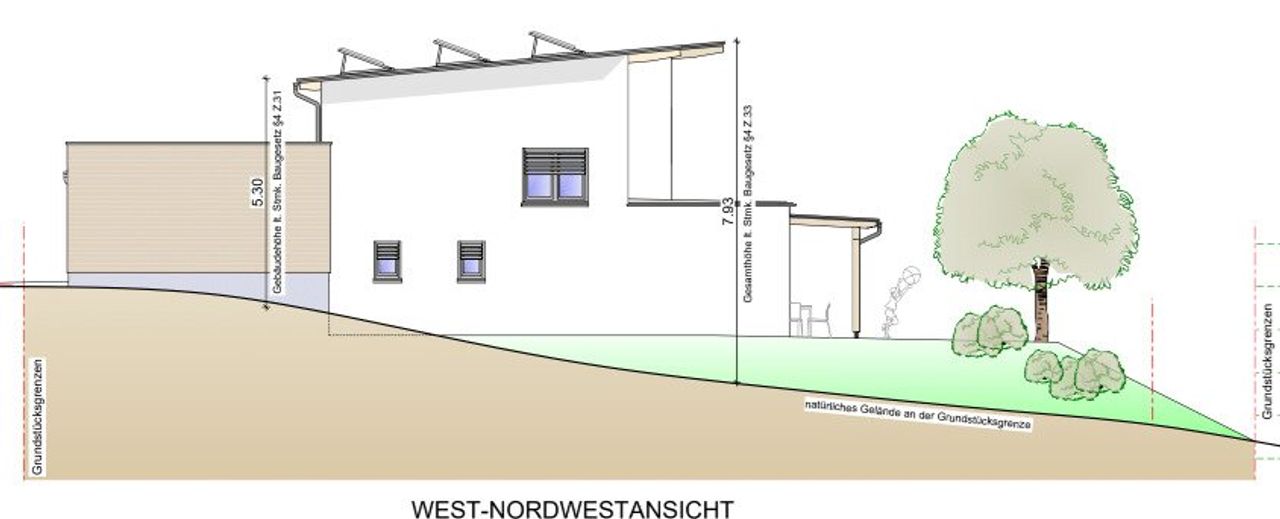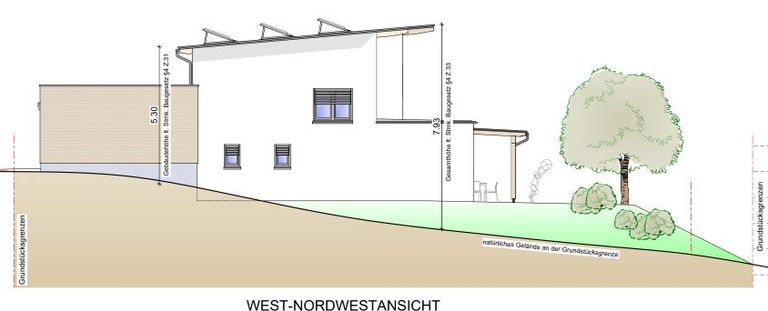 Verkauft wird es inkl. Baugenehmigung für ein Einfamilienhaus im Ausmaß von 111 m² Wohnnutzfläche zzgl. Doppelcarport.