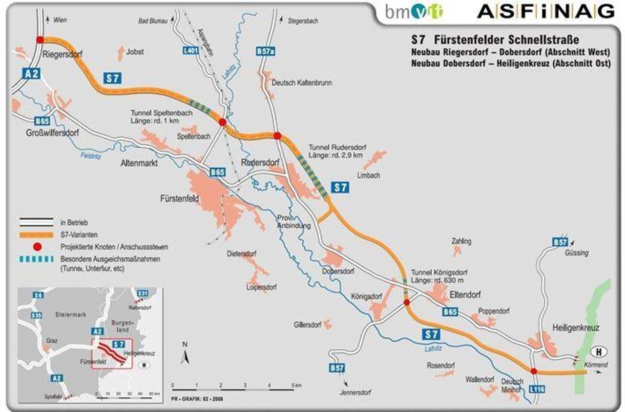 Die S 7 Fürstenfelder Schnellstraße verläuft nun vom Knoten Riegersdorf (A 2) über Fürstenfeld bis zur Staatsgrenze bei Heiligenkreuz. Die S 7 wird die Gemeinden in der Oststeiermark und im Burgenland vom Durchzugsverkehr entlasten und gewährleistet eine schnelle Anbindung.