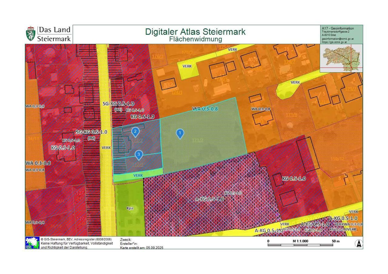 Dank der gemischten Widmung - WA (Wohngebiet) und SG-KG (Kerngebiet) - eignet sich das Grundstück sowohl für privates Wohnen als auch für gewerbliche Nutzung oder Projektentwicklung.