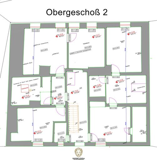 Vermietet sind derzeit das 1. Und 2. OG mit ca. 250 qm. (nicht vermessen) Das unvermietete EG (weil feuchte Wände) ist geschätzte 120 qm groß. (nicht vermessen) Die Mietverträge sind befristet.