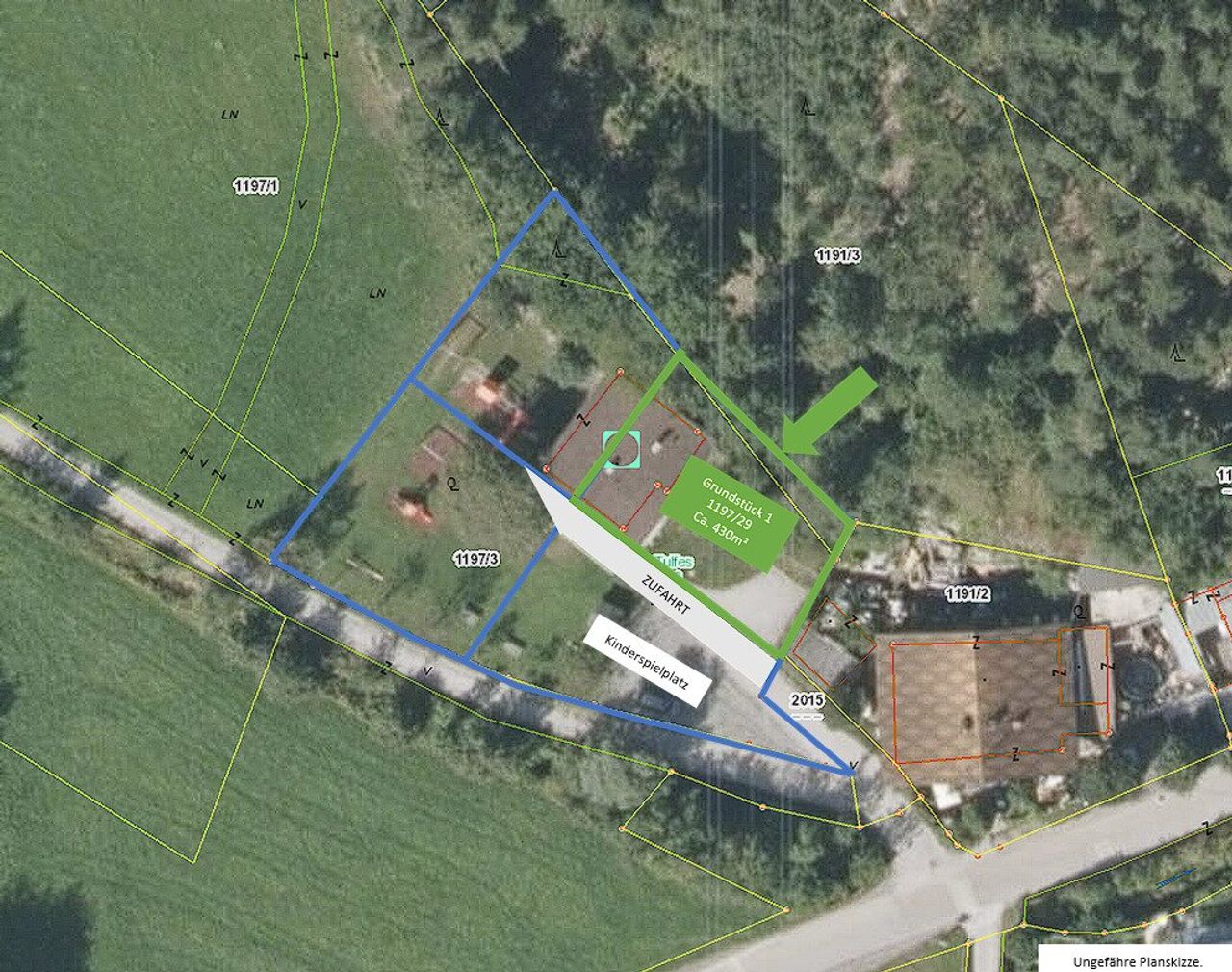 Zum Verkauf steht eine wunderschöne Grundstückfläche in traumhafter Lage mit jeweils 430m² Fläche. Der Baugrund ist in der Volderwaldstraße 9, 6075 Tulfes. Neben sehr guter Verkehrsanbindung und familienfreundlicher Gegend befindet sich der Kinderspielplatz sowie auch der Wald direkt vor der eigenen Haustüre. Sämtliche Ver- und Entsorgungseinrichtungen sind bereits vorhanden. Zudem sind die Flächen an die öffentliche Wasser-, Kanal-, Strom- und Telefonversorgung angeschlossen. Der Altbestand wird von der Verkäuferseite abgerissen.