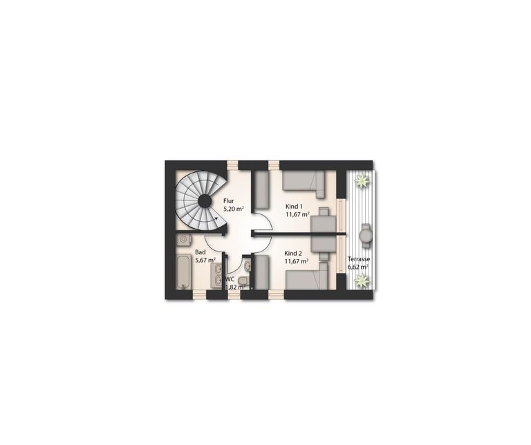 Zwei Schlafzimmer mit je ca. 11,67 m²