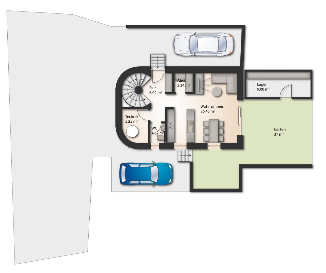 2 Autoabstellplätze an der westlichen Grundstücksseite