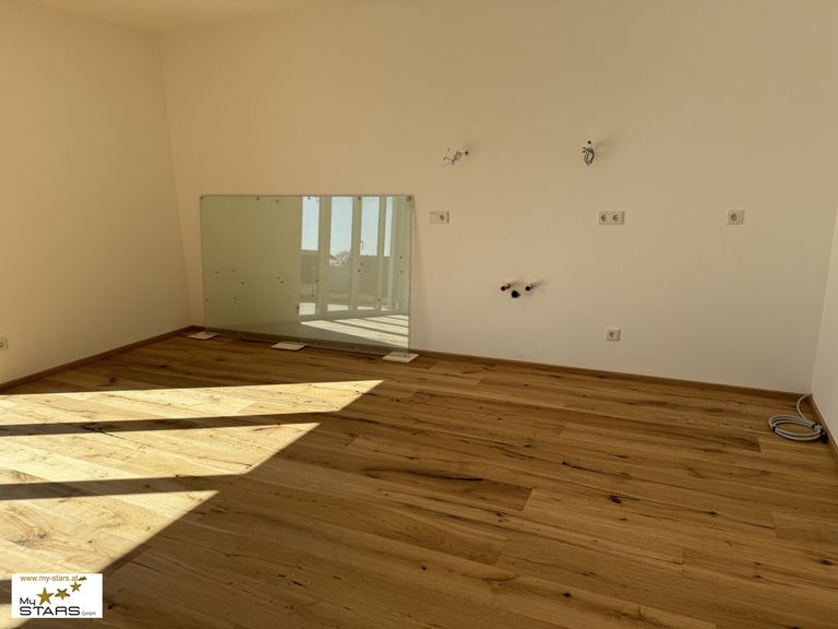 Die Ausstattung mit weißen Kunex-Türen, Villeroy & Boch WC's, elektrische Raffstores an der Südseite, Fußbodenheizung mit Einzelraumregelungen, eigenem Hausbrunnen für die 3 Neubauhäuser lassen keine Wünsche offen: Genießen Sie die Vorteile von Fliesen und Landhausdielen-Parkettböden, die nicht nur stilvoll, sondern auch pflegeleicht sind. Die moderne Zentralheizung sorgt für wohlige Wärme an kalten Winterabenden, während das Badezimmer mit Fenster, Badewanne und Dusche zum Entspannen einlädt.