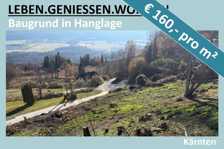 BAUGRUND IN HANGLAGE UM € 160,- PRO M² Zum Verkauf steht ein Baugrundstück in Köttmannsdorf, südlich vom Wörthersee. Hier haben Sie viel Platz und können Sie sich den Traum von Ihrem Traumhaus erfüllen. HIGHLIGHTS DES GRUNDSTÜCKS: - Ausblick: auf die Kärntner Bergwelt - Licht: Sonne den ganzen Tag - Größe: viel Platz um Ihre Träume zu erfüllen BEBAUBARKEIT * Grundstücksgröße: je nbach Bedarf * Widmung: Bauland Dorfgebiet * Baufläche: an ihre Bedürfnisse anpassbar * Geschossflächenzahl (GFZ): 0,6 * Geschoße: textlicher Bebauungsplan liegt den Unterlagen bei * Maximal mögliche Bruttoflächen: textlicher Bebauungsplan liegt den Unterlagen bei * Architekt: Auf Wunsch empfehlen...