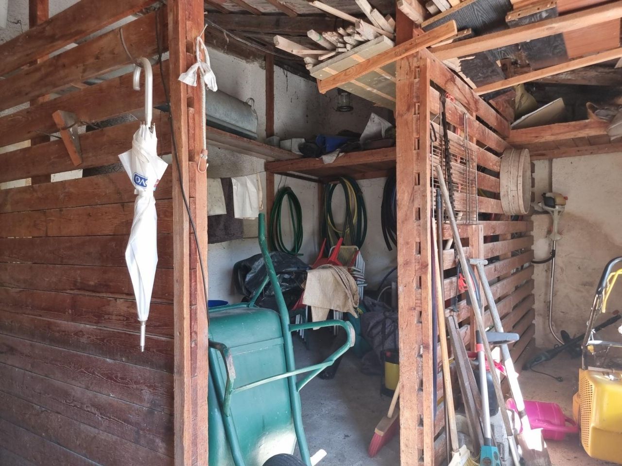 Haus: Erdgeschoß mit Wohnküche, Schlafzimmer, Bad, Toilette, Abstellraum und Vorraum. Im oberen Geschoß finden Sie eine Galerie, eine Veranda und drei Zimmer (Küche, Wohn- und Schlafzimmer).