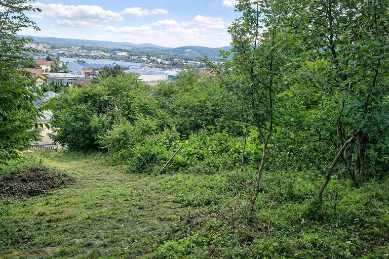 Das längliche Grundstück in Hanglage mit ca. 5.046 m² Gesamtfläche erstreckt sich über ca. 220 Meter und besteht aus Bauland und Grünland mit Forstkennzeichnung (FOS).