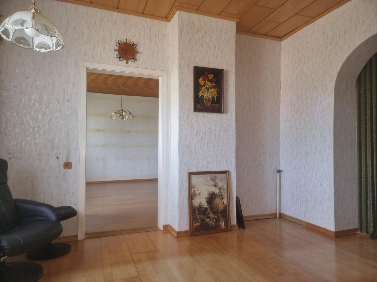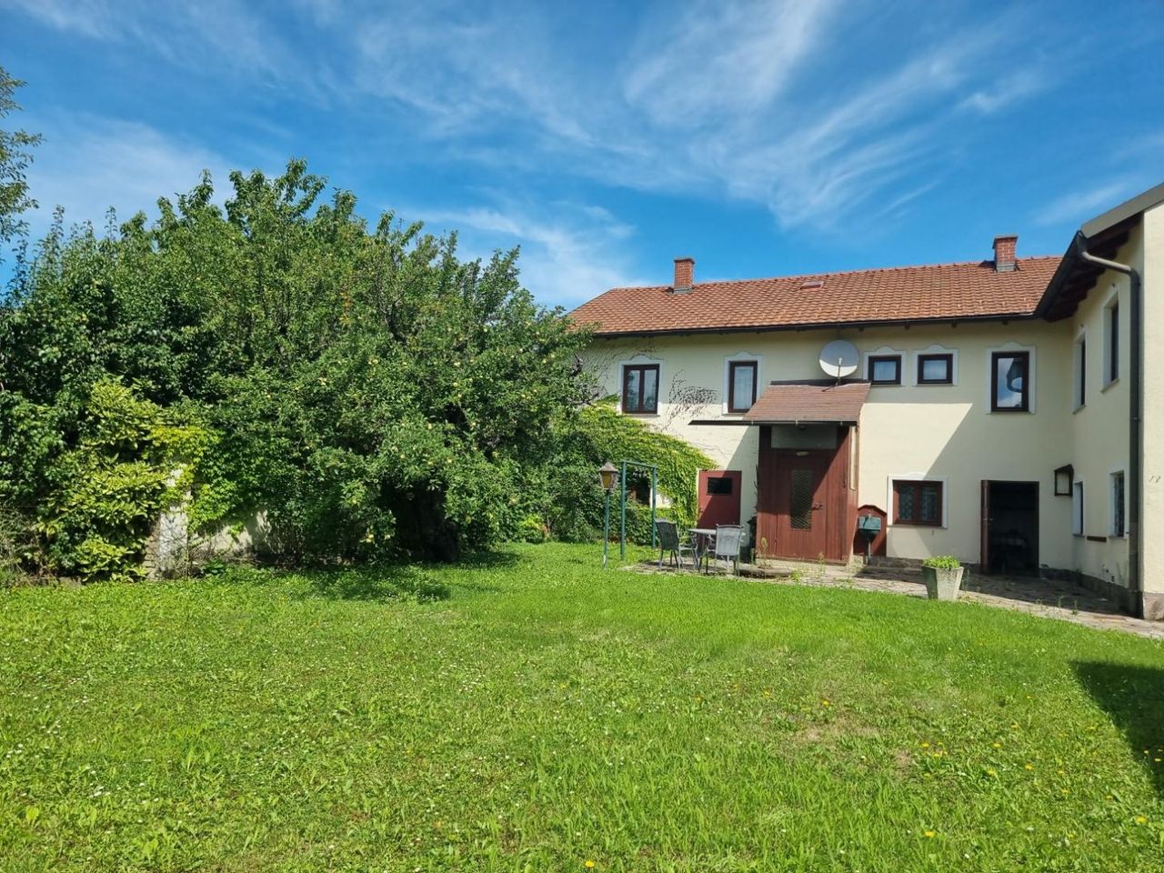 Neben dem Altbaumbestand gibt es auch den Althausbestand, errichtet vor 1940, mit Zubau um 1958. Das Haus bietet auf einer Ebene etwa 120m² Wohnnutzfläche und ist zu sanieren - die Fotos schönen den Zustand etwas.