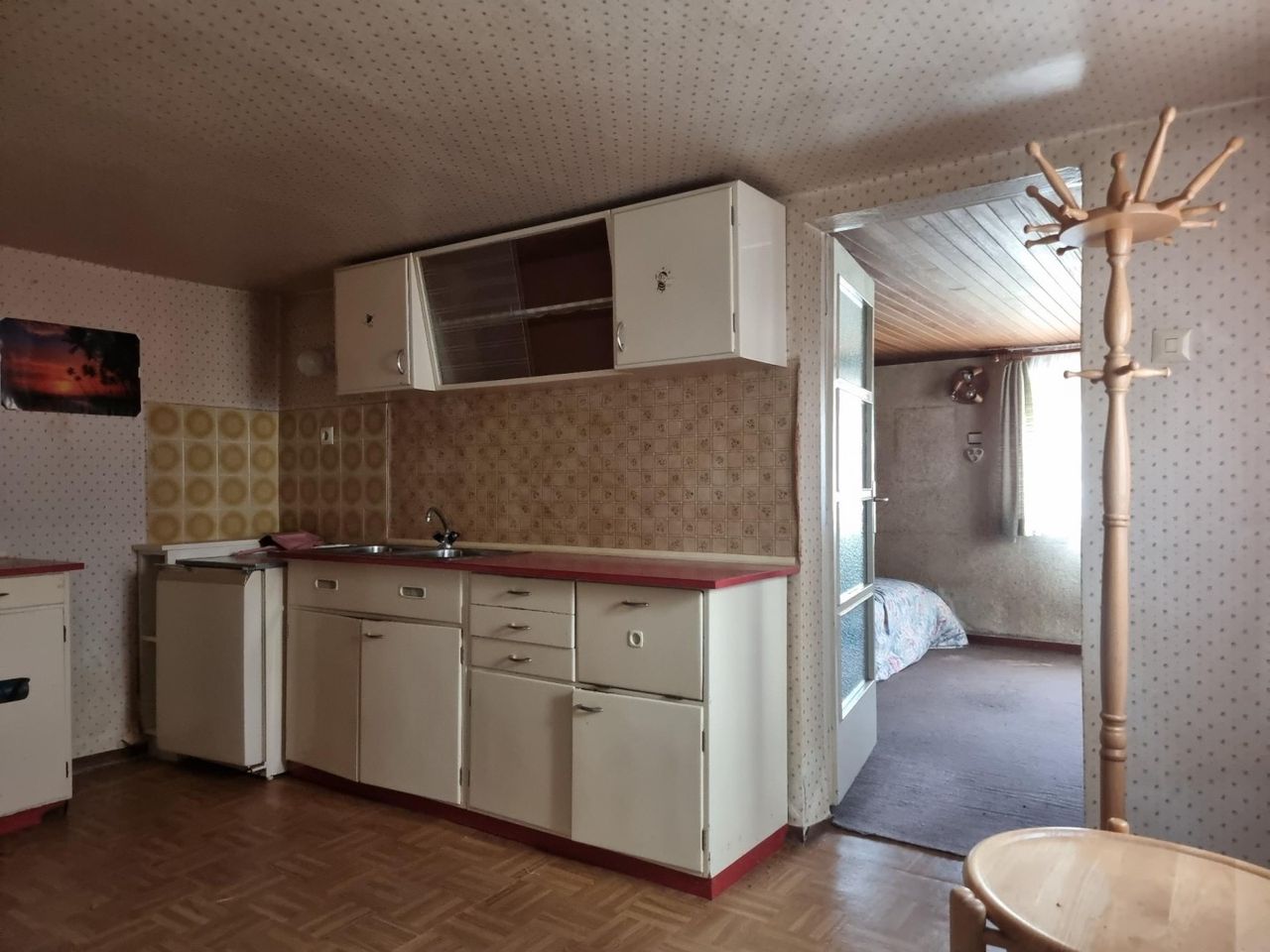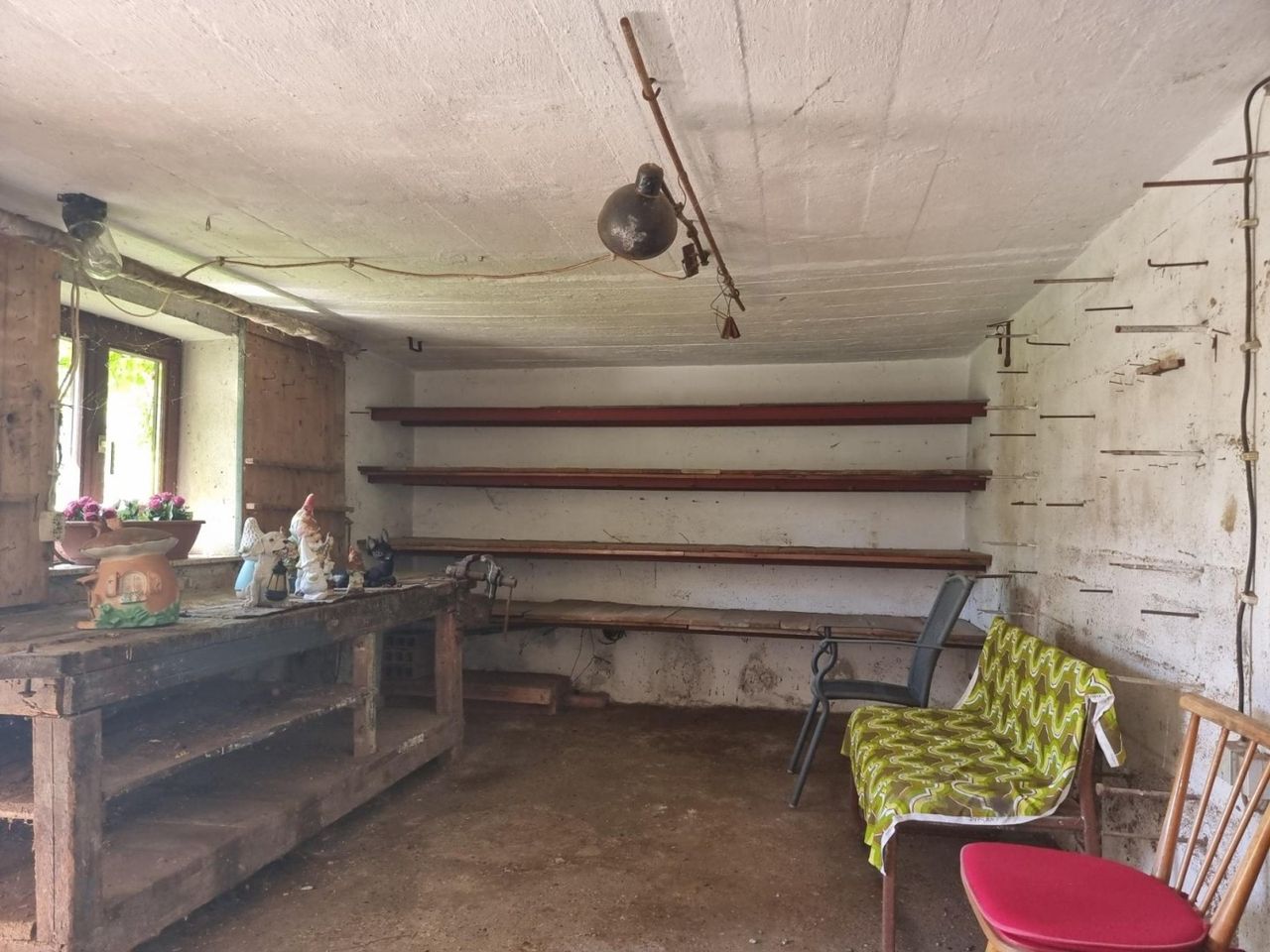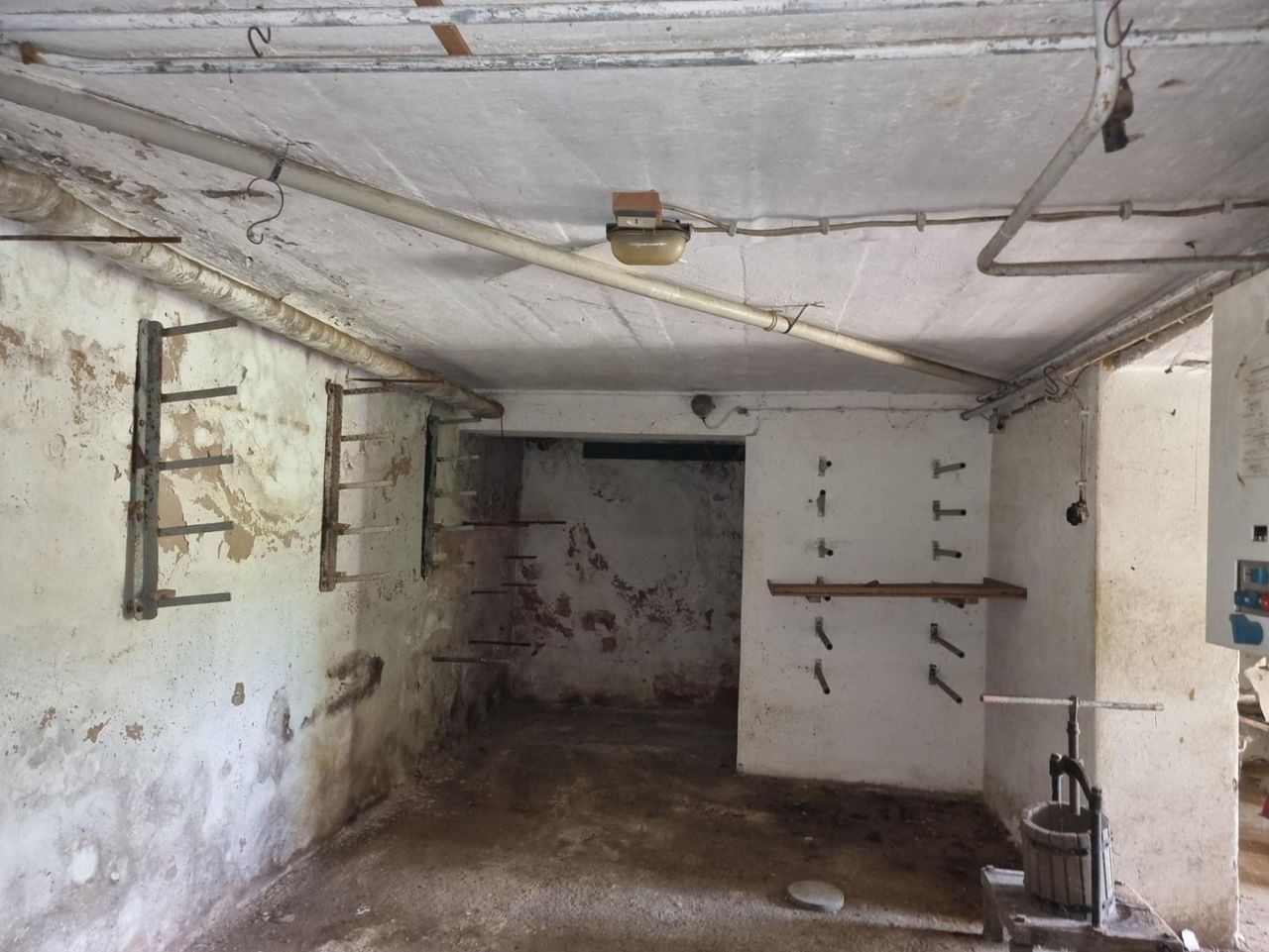 Der Keller wurde die letzten Jahre nicht mehr bewohnt oder beheizt, Mauerfeuchte begünstigt hier die Schimmelbildung, speziell im als Sommerküche und Wohnbereich genützten Teil, unter den Tapeten.