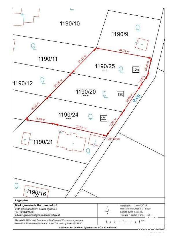 Sonnwendweg 12a | Grundstück-Nr. 1190/25 | Fläche ca. 710 m² | Breite Straßenfront 18,89 m / Tiefe mind. 34,31 m | Kaufpreis 159.800 EUR | einmalige Aufschließungsabgabe EUR 24,980,46