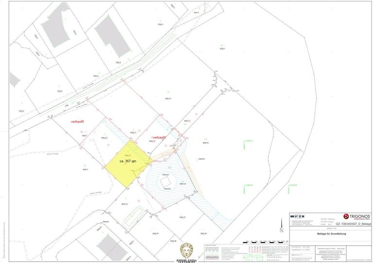 Der im Plan skizzierte Baukörper (mögliche Bebauung) ermöglicht eine Bebauung von einem Erd- und Obergeschoß sowie einem Kellergeschoß mit einer maximalen Nettowohnnutzfläche von bis zu ca. 125 qm. (Abhängig von der Eingangsgestaltung)