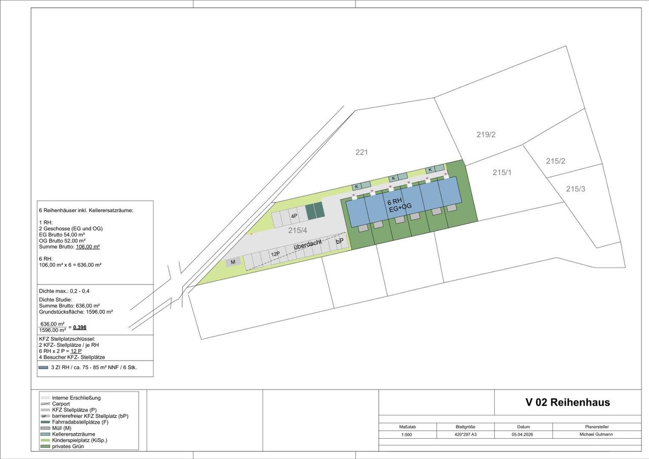 Derzeit gilt für das Grundstück eine Bebauungsdichte von 0,2 – 0,4 mit einer Widmung WA ( Wohnen Allgemein).