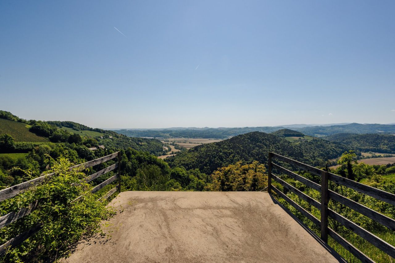 Auf rund 460 Höhenmetern gelegen, bietet dieses Grundstück einen spektakulären Panoramablick auf weitläufige Weinberge, sanft geschwungene Hügel und eine faszinierende Landschaft. Das mediterrane Ambiente und die beeindruckenden Bauwerke in der Umgebung schaffen eine einzigartige Atmosphäre, die durch den herrlichen Weitblick perfekt ergänzt wird.