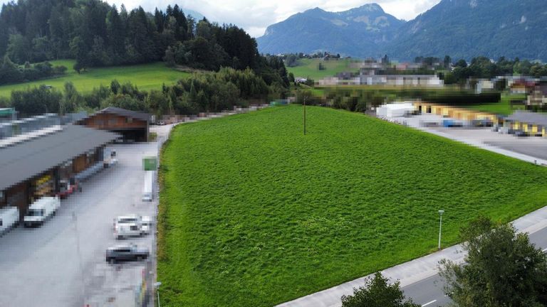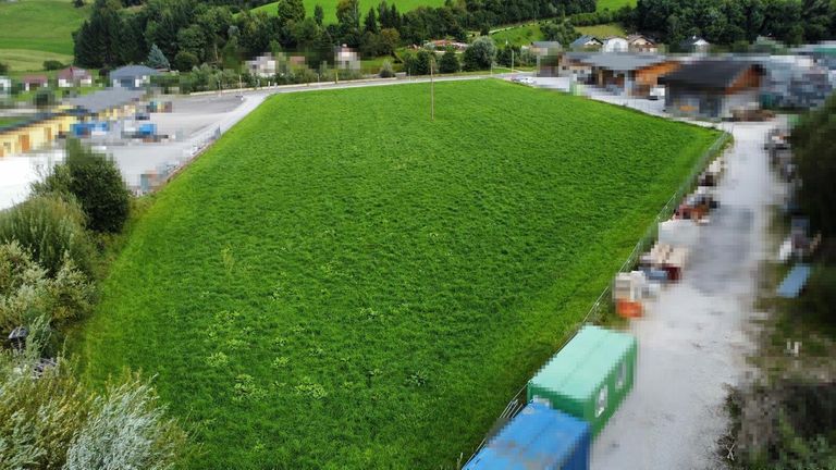 Flaches, voll aufgeschlossenes Grundstück mit Widmung I1 0,2-0,8 und ein Teil GG 0,2-1,2. Bebauungsplan muss mit der Gemeinde abgestimmt werden.