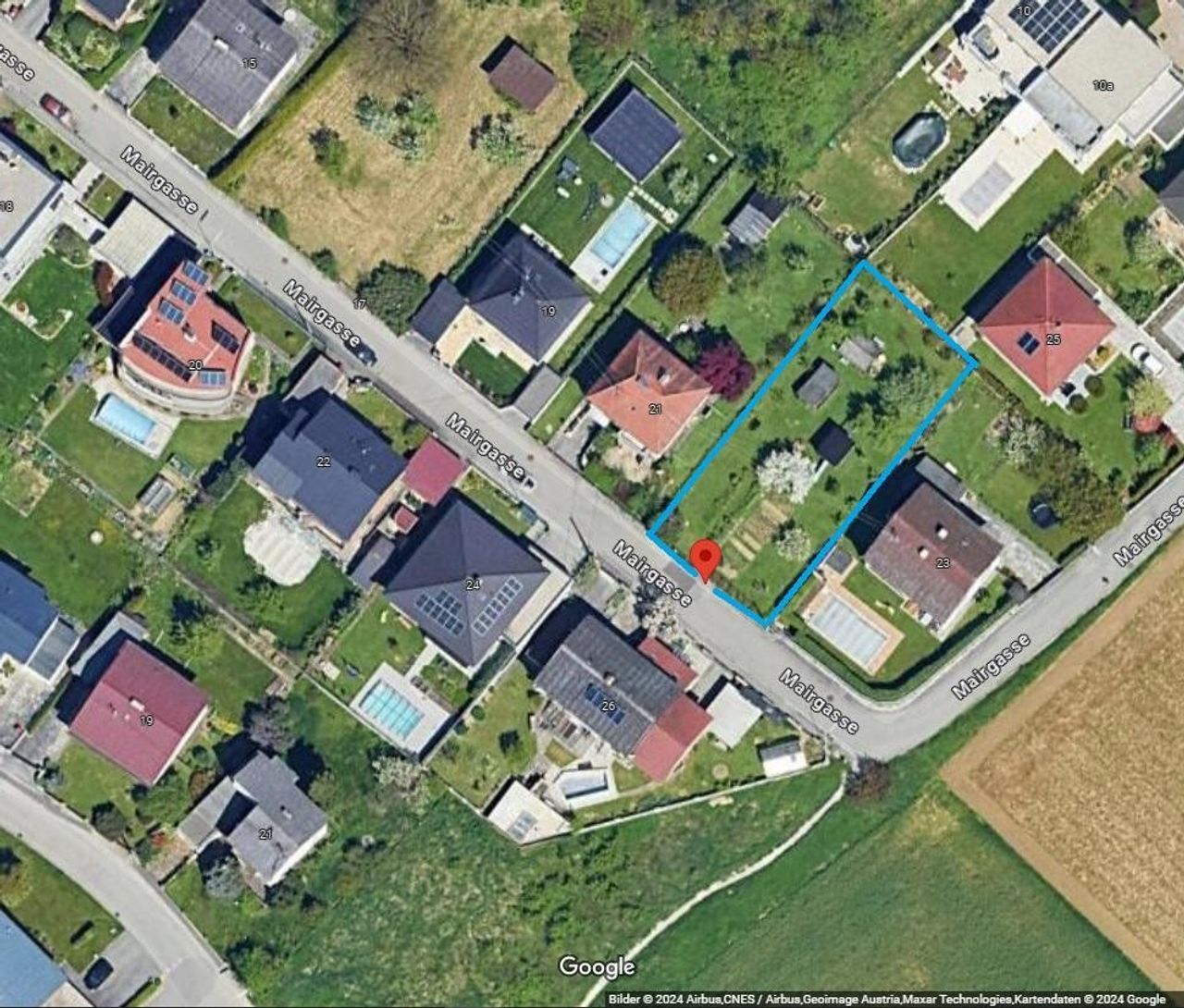 Grundstück in Leonding Bergham am Ende der Mairgasse.