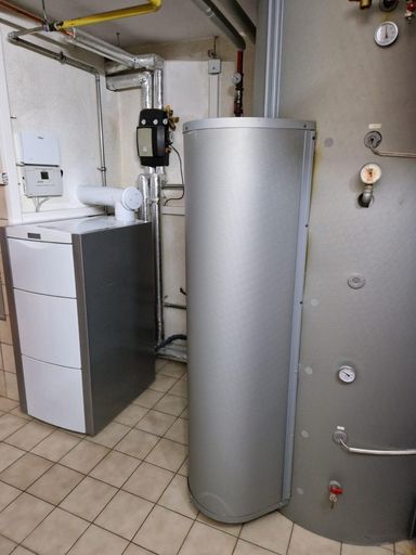 2012: moderne Gasheizung, bei der auch die Abwärme noch genützt wird. Die zusätzliche große Solaranlage unterstützt die Heizungsanlage.