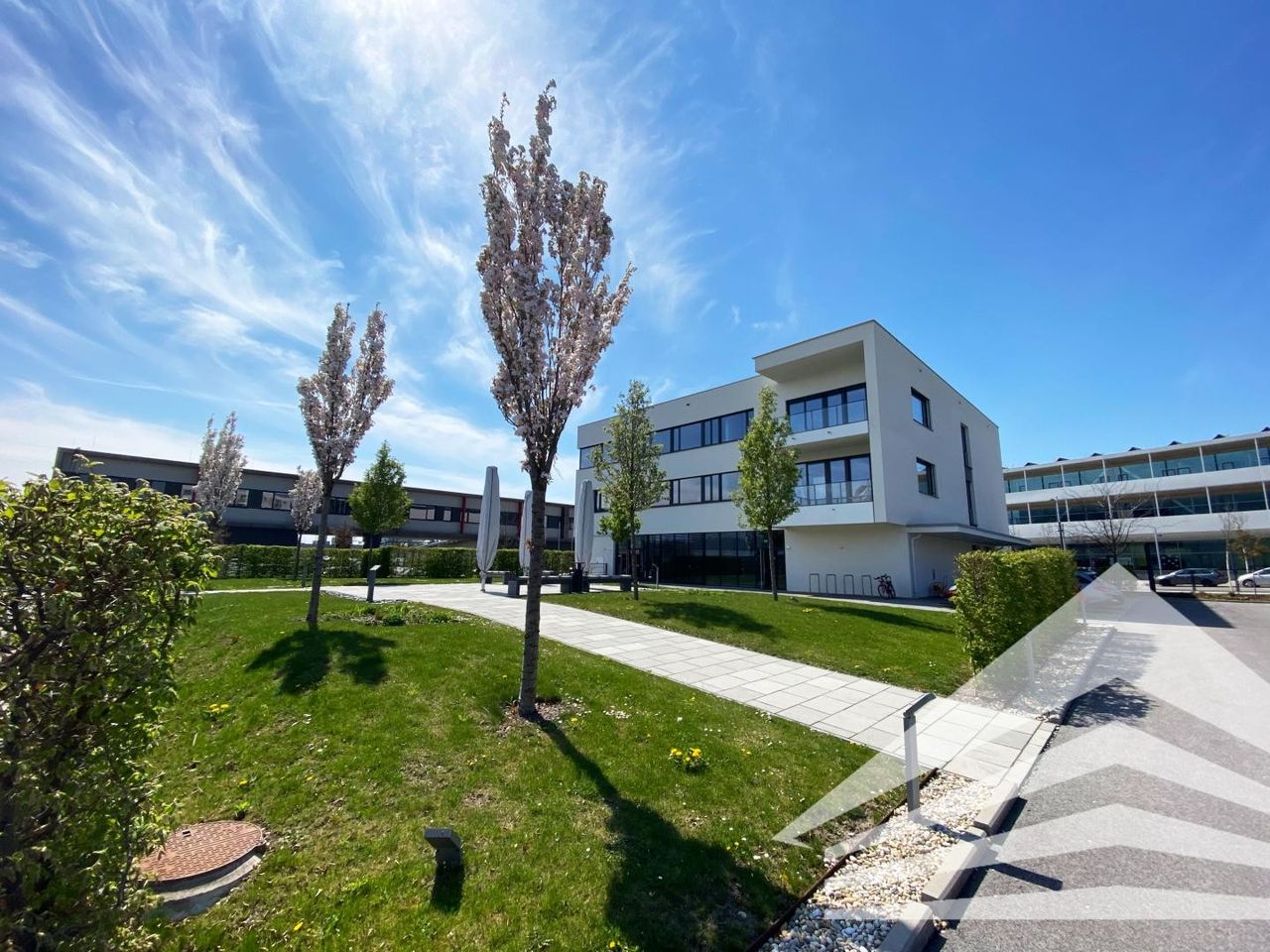 Das modern gestaltete Vision Lab bietet im 2. Obergeschoss ca. 450 m² bezugsfertige Bürofläche, welche durch einen separaten Eingang mit dem Lift oder über die großzügige Stiege erreicht wird. Die Fläche ist unterteilt in 2 Eingangsbereiche mit Empfang, 4 individuelle Büroräume zwischen ca. 24 m² und ca. 35 m², 2 offene Büroflächen mit ca. 68 m² und ca. 100 m², einem Sozialraum mit Küche und Balkon und einer weiteren Teeküche. Das effizient ausgestattete Gebäude bietet eine abgehängte Decke mit integrierter Deckenkühlung und ansprechende Beleuchtung, Teppichboden mit Bodendosen und Fußbodenheizung, automatische Außenbeschattung, vorbereitete Netzwerkverkabelung mit Serverschränken sowie 4 getrennte WC´s.