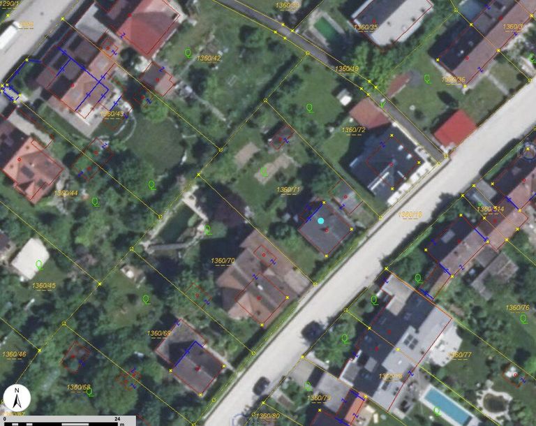 Laut Bebauungsplan sind pro Bauplatz maximal 200 m² bebaubare Grundfläche für ein Hauptgebäude zulässig. Pro Grundstück ist ein Hauptgebäude erlaubt, das bis zu drei Wohneinheiten aufnehmen kann – ideal für eine individuelle Einfamilienhausplanung oder ein kleines Mehrparteienhaus. Derzeit befindet sich auf dem Grundstück ein älteres Einfamilienhaus (Altbestand) mit Garage, Keller und Gartenhütte. Das Highlight dieses Angebots ist die großzügige Grundstücksfläche: der sonnige Garten mit schönem Grünblick und ausreichend Platz für Gartenprojekte.