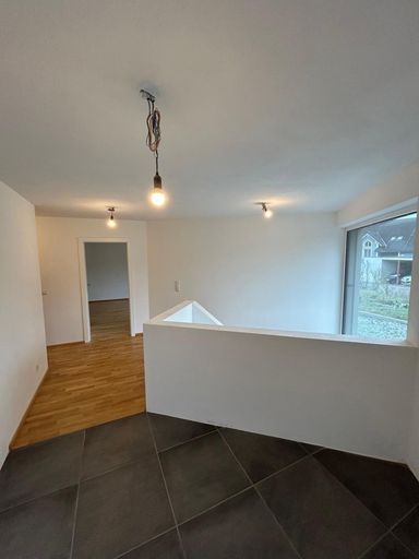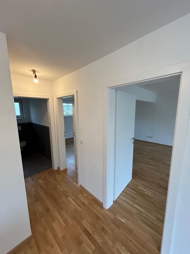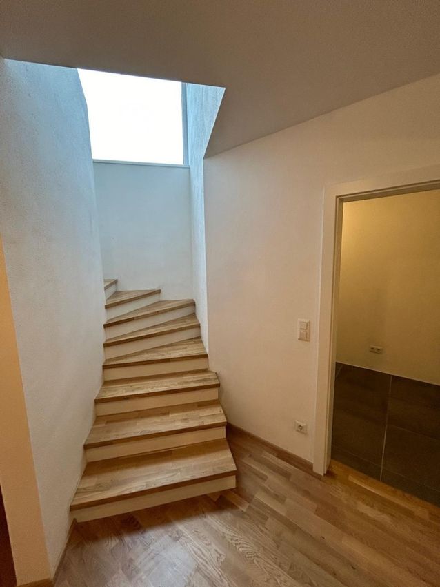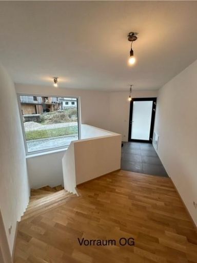 Im EG gibt es ein Schlafzimmer und WC, Vorraum und ein sehr großes Wohnzimmer da hier ein Schlafzmmer und das Wohnzimmer vereint wurden und so kommt man auf 45 m2 Wohn/Essbereich. Man könnte aber jederzeit wieder eine Wand einziehen., Küche muss noch eingebaut werden. Alle Anschlüsse sind schon vorbereitet. Terasse