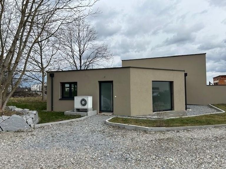 Eine hochwertige Doppelhaushälfte/Bungalow mit Untergeschoß am Ende einer Sackgasse. Im EG gibt es ein Schlafzimmer und WC, Vorraum und ein sehr großes Wohnzimmer da hier ein Schlafzmmer und das Wohnzimmer vereint wurden und so kommt man auf 45 m2 Wohn/Essbereich. Man könnte aber jederzeit wieder eine Wand einziehen., Küche muss noch eingebaut werden. Alle Anschlüsse sind schon vorbereitet. Terasse Im UG ist das große Badezimmer mit 16,2 m2 mit bereits vorhandenen Saunanschlüssen, der Technikraum und 2 Schlafzimmer (28 und 16 m2), WC und Wäschraum und ein großer Vorraum. Im UG sind keine großen Fenster Das EG hat 77 m2 und...