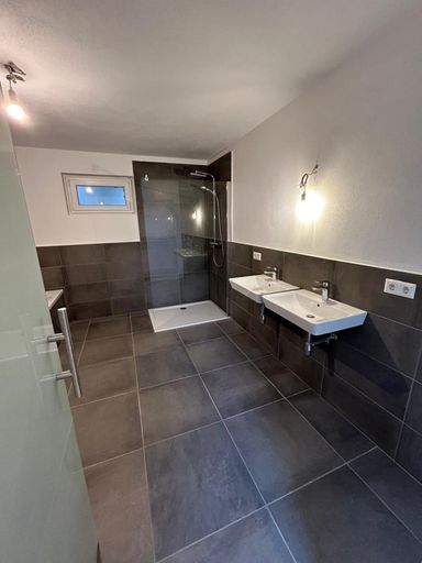 Im UG ist das große Badezimmer mit 16,2 m2 mit bereits vorhandenen Saunanschlüssen, der Technikraum und 2 Schlafzimmer (28 und 16 m2), WC und Wäschraum und ein großer Vorraum. Im UG sind keine großen Fenster