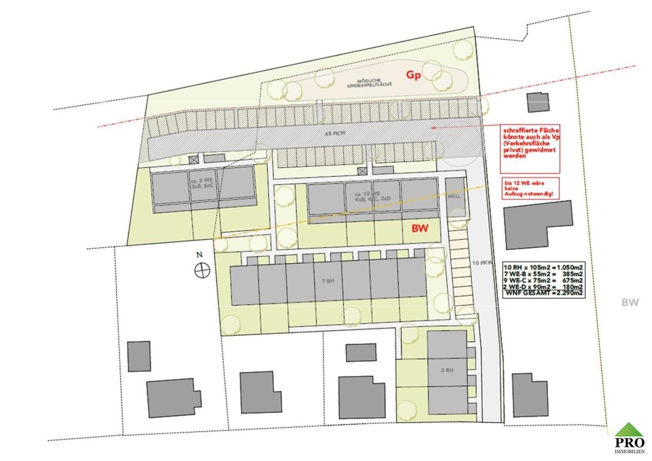 Kaufpreis: € 795.000,- (347,-/m2 WNFL) 18 Wohnungen & 10 Reihenhäuser